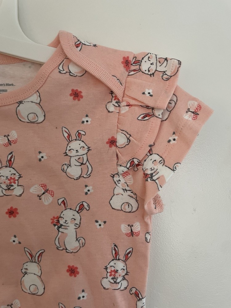 Member's Mark Baby Girls Cute Bunny Cotton Ruffle Short Sleeve Bodysuit Pink 24M. Condition is pre-owned. Smoke free, pet free home. Shipped via USPS Ground Advantage. In very good condition. Free of rips or stains.