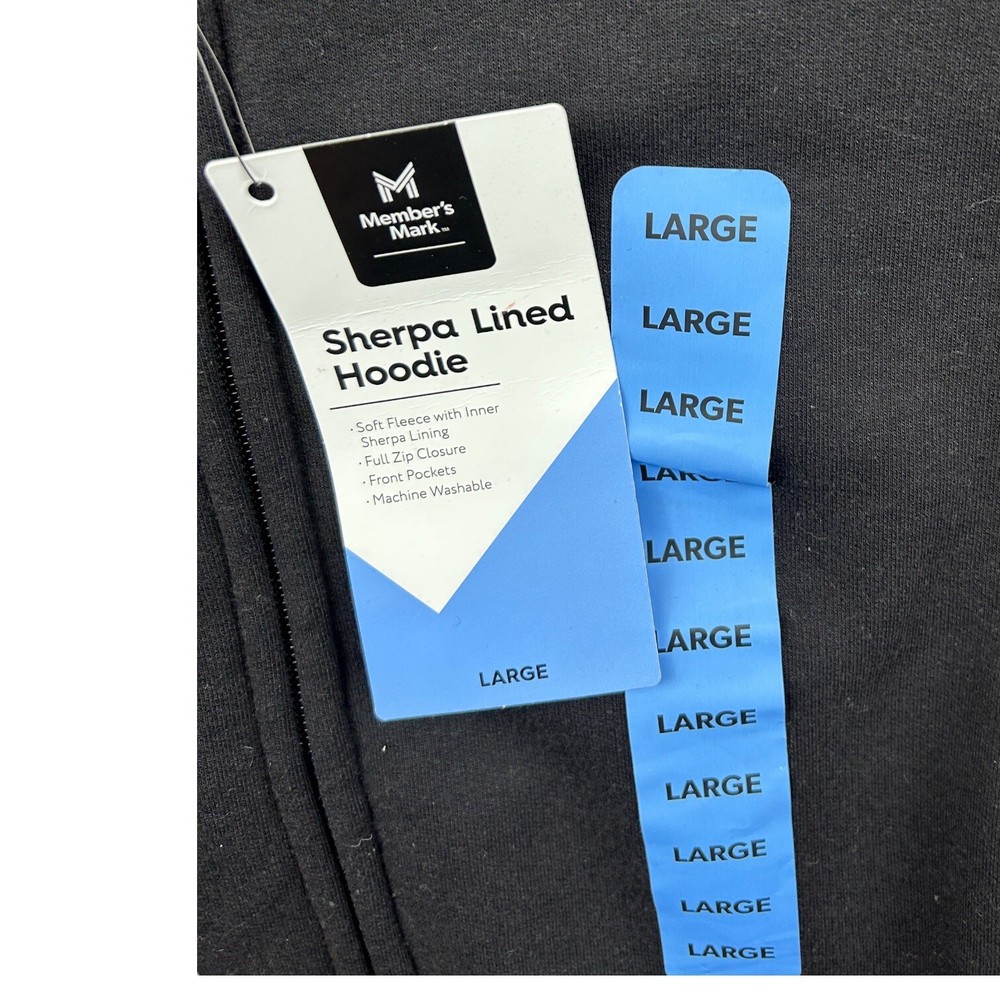 Members Mark Black Sherpa Lined Sporty Casual Full Zip Jacket Large