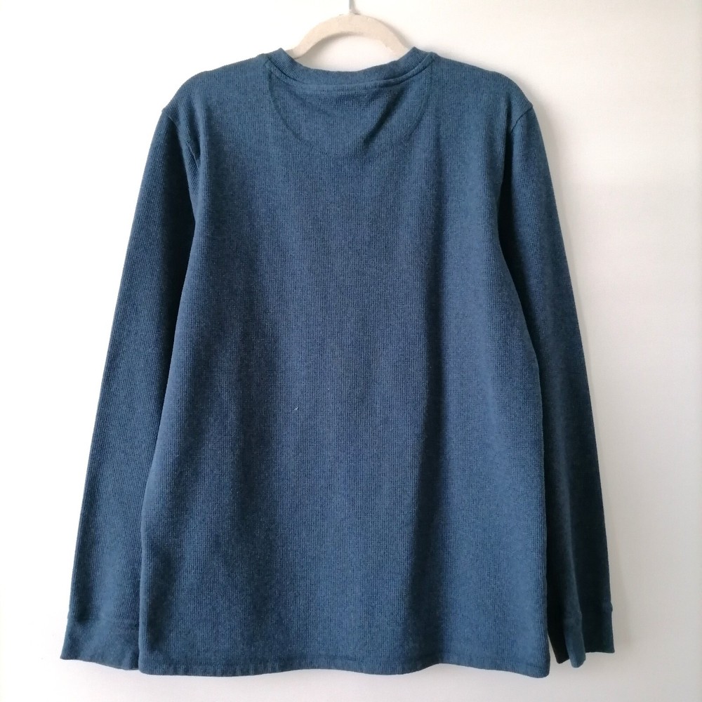 Members Mark Blue Waffle Knit Henley Mens Size L Thermal T-Shirt