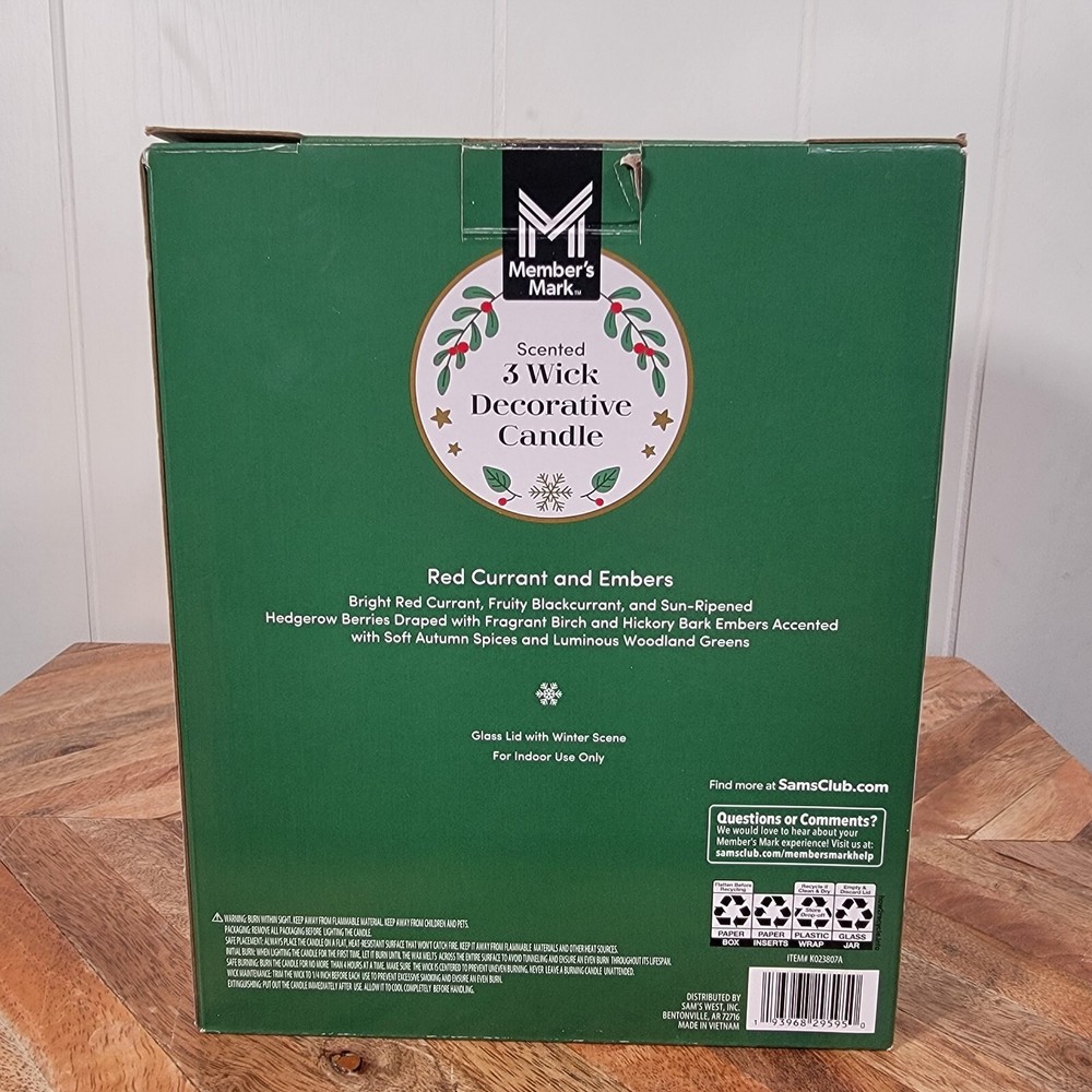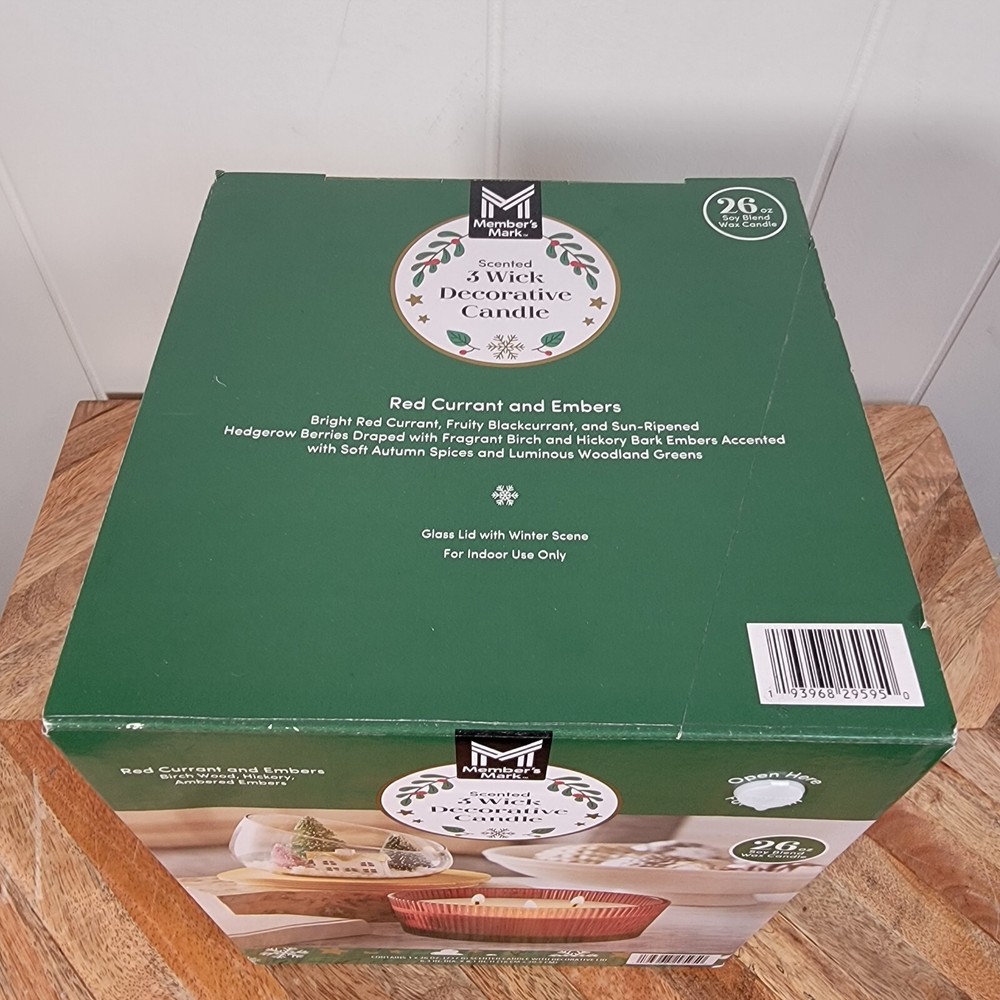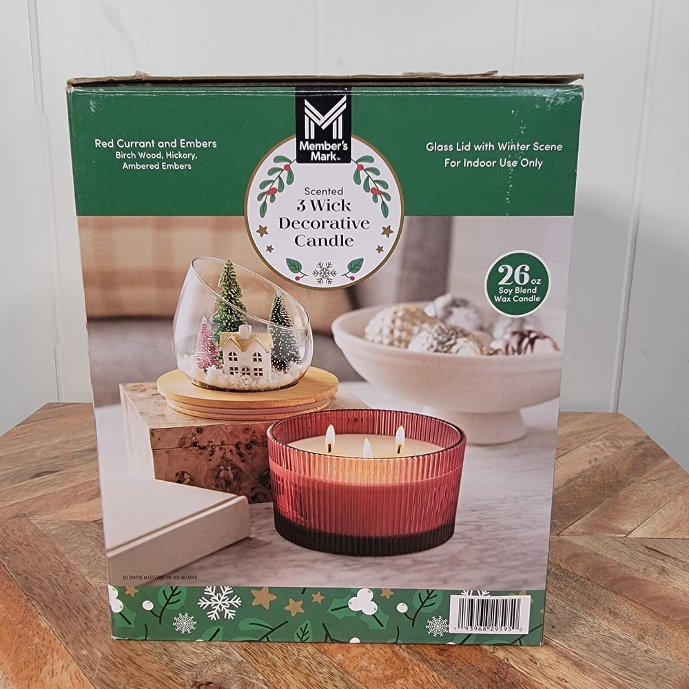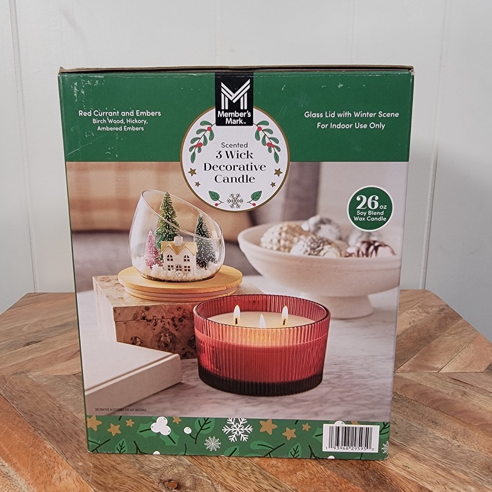 Members Mark Christmas Snow Globe Scented Soy Wax Blend Candle Red - NEW