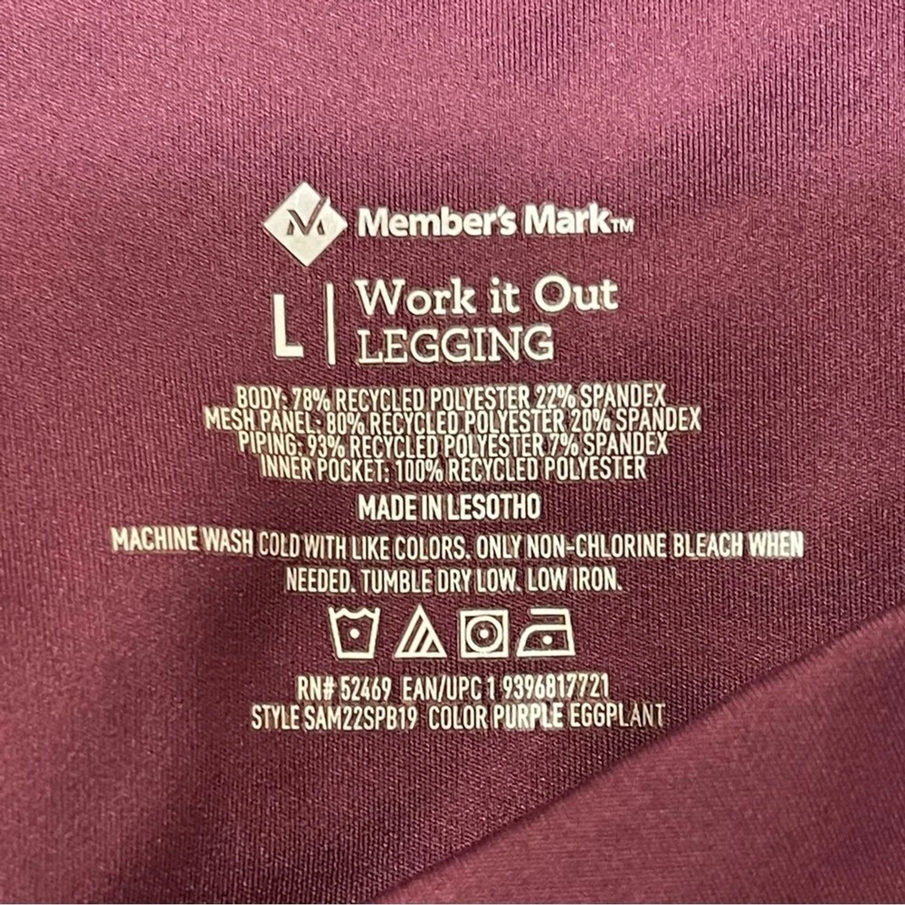 Members Mark High Rise Work It Out Leggings Burgundy Mesh Womens Large Burgundy Has Stretch Mesh panels on legs Side leg pockets High rise Thick waist for better stability Good used Condition Smoke free home 319