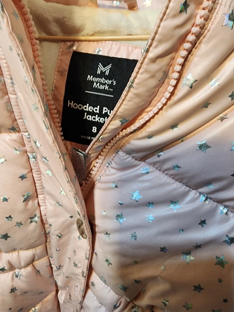 Members Mark Kids Puffer Star Sparkling Jacket Sz 8