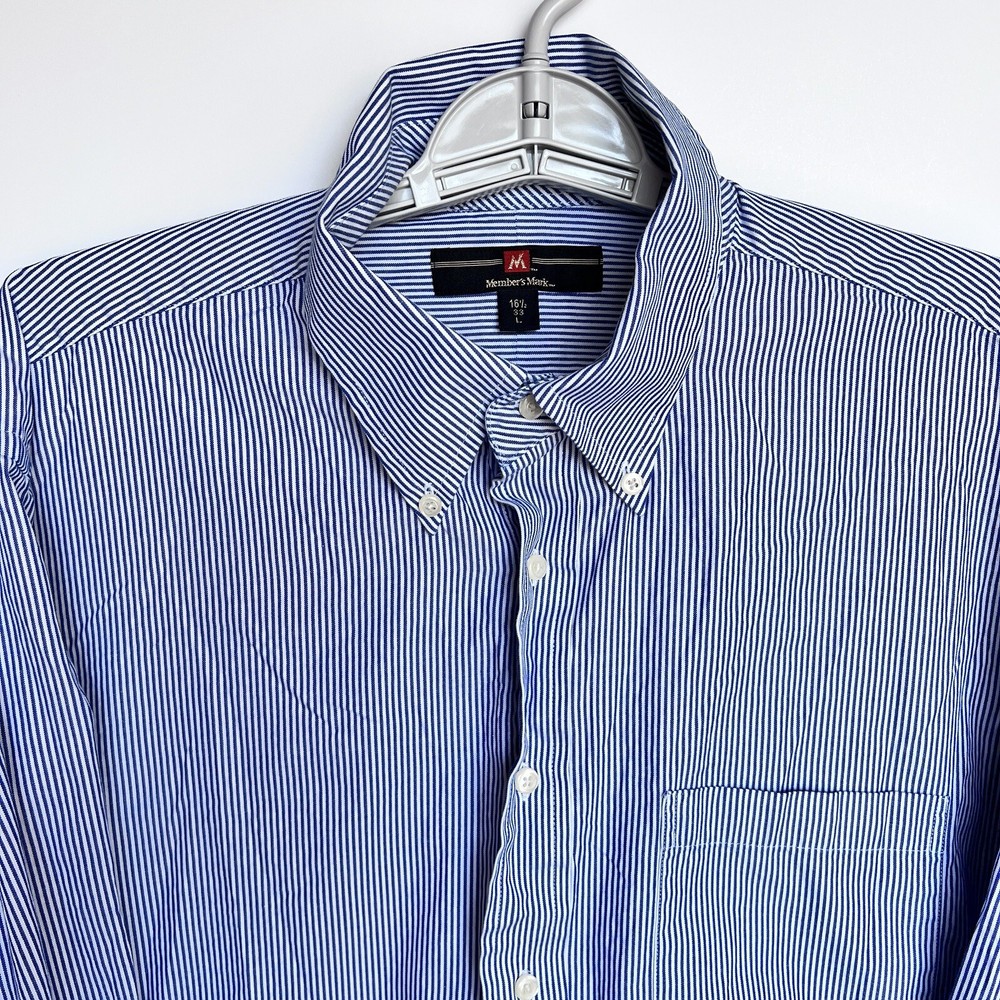 Members Mark Mens Sz 16.5 Blue/WhiteButton Up Long Sleeve 32/33 Collared Shirt. All clothing items have been washed/laundered to eBays standards. The exceptions are new with tags clothing.
