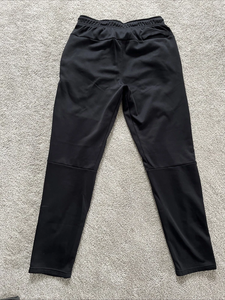 Elevate your workout wardrobe with these Members Mark workout pants for men. The black pull-on tech knit stretch pants are perfect for gym and training, walking, cross-training, running, and jogging. Made of polyester fabric, these pants are machine washable and feature a solid pattern, straight leg style, and regular fit. The knit fabric type provides a comfortable fit, while the stretch feature ensures maximum flexibility during your workouts. These pants are part of the Tech Fleece product line and are made in Bangladesh. Ideal for activewear occasions, these pants are a must-have for any fitness enthusiast. Smoke free home. Like new- only worn once.