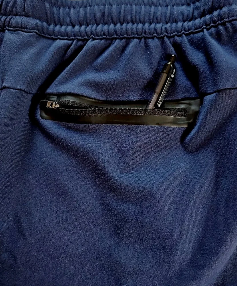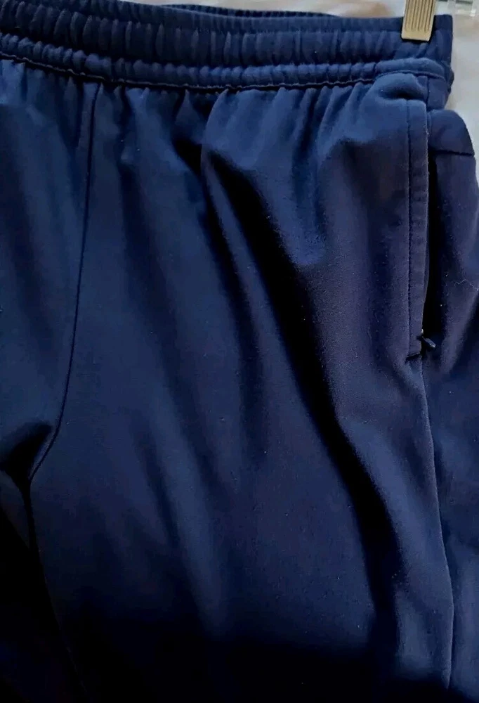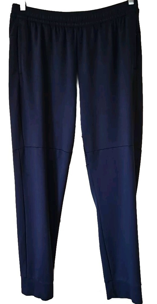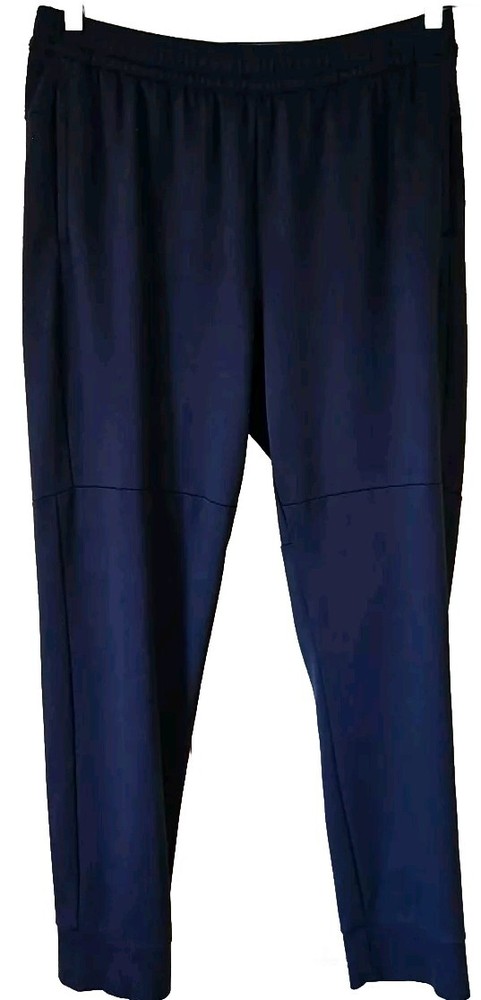 Elevate your activewear game with these stylish and comfortable jogger pants from Member's Mark. Featuring a drawstring closure and elastic waist, these pants provide a secure and comfortable fit for any activity. The tapered leg style and blended fabric make these pants perfect for all seasons, whether you're hitting the gym, going for a walk, or running and jogging. These pants come in a solid blue color and are made of 30% nylon, 4% spandex, and 66% rayon, making them easy to care for and machine washable. The pants also feature zippered security pockets and are perfect for gym and training, as well as other athletic activities. Available in size large, these luxury jogger pants are a must-have for any active man's wardrobe. Approximate Flat Lay Measurements: Waist: 16.5" Hips: 20" Waist to Hem: 38" Rise: 12" Inseam: 27" Ankle Opening: 5.25"