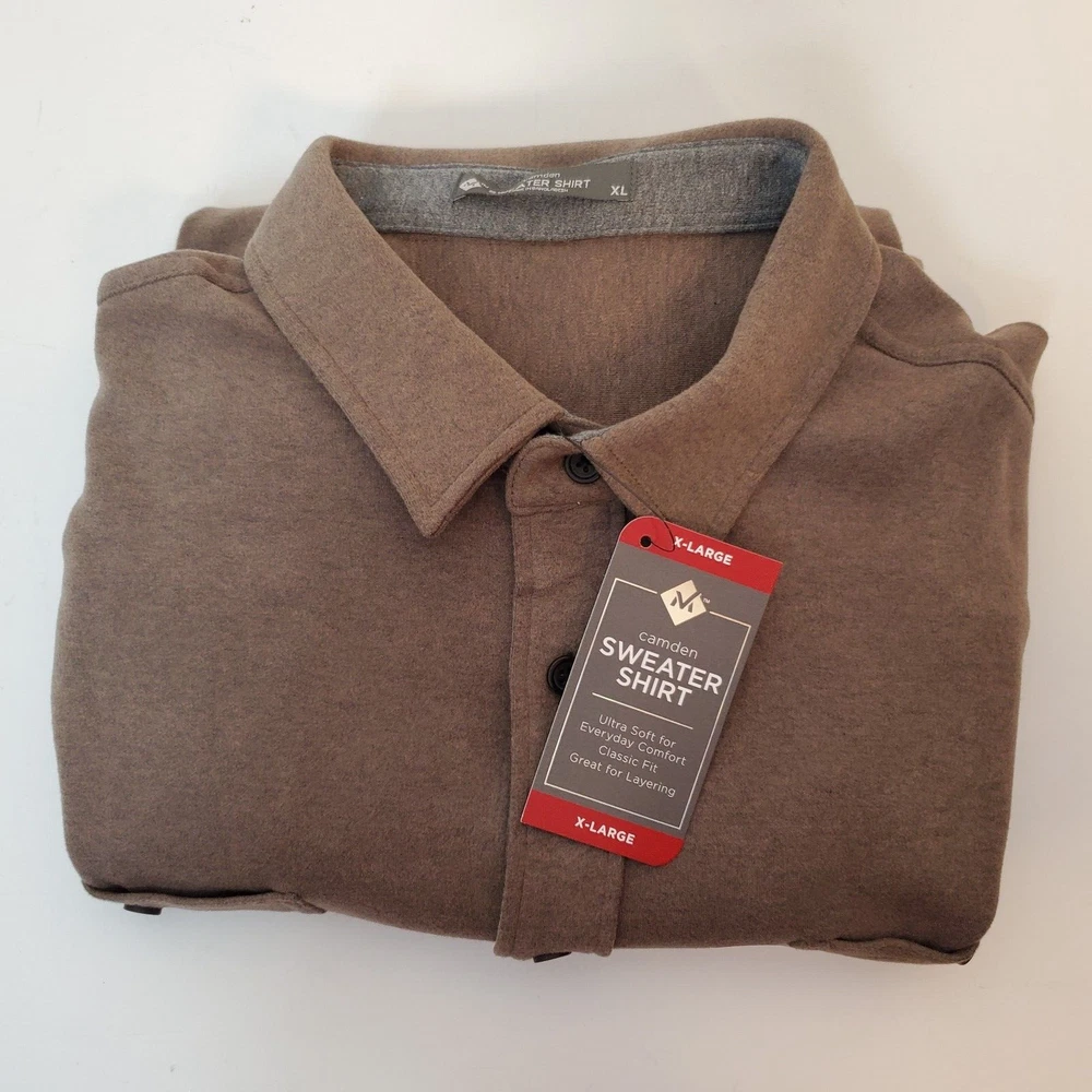 Member's Mark Men's Camden Brown Button Front Knit Sweater Shirt Ultra Soft SZ XL. NWT. Measurements: Pit to Pit 24", Back Length 30", and Arm 26". Ships USPS Ground Advantage. J8 15