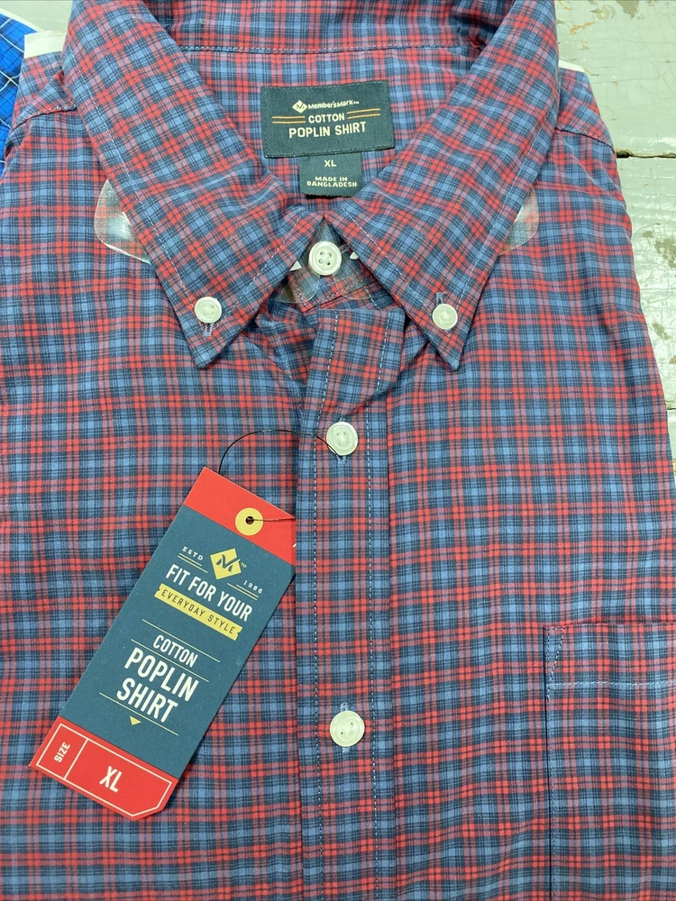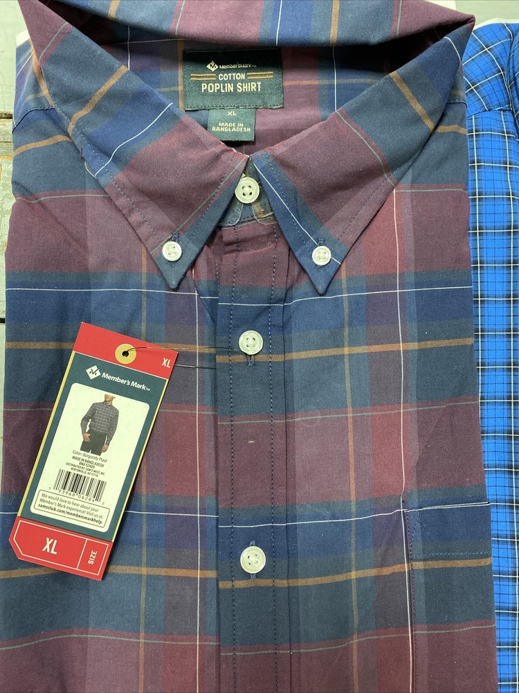 Members Mark Men's Cotton Poplin Shirt Assorted sizes and 3 colors to choose from Checked pattern. Button down collar. Button at cuffs. Long Sleeve. Pocket on chest. 100% cotton. Machine washable. Brand new with tags. Please view pictures for best description. See pic with tag for color choice. Thank You for looking! *shipping fee valid for lower 48 states only.. please contact me for shipping quotes outside the lower 48 states.* *please be aware that some colors may look slightly different in pictures due to lighting*