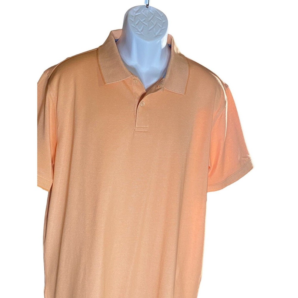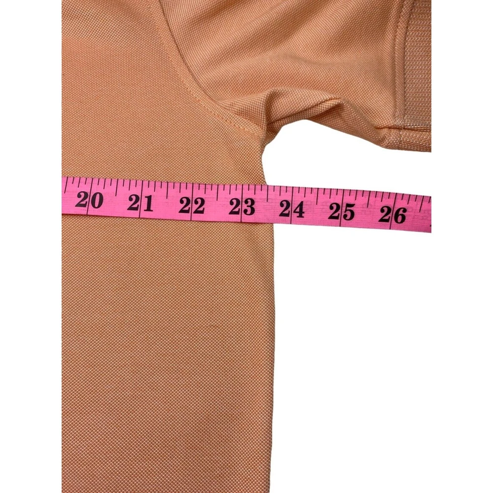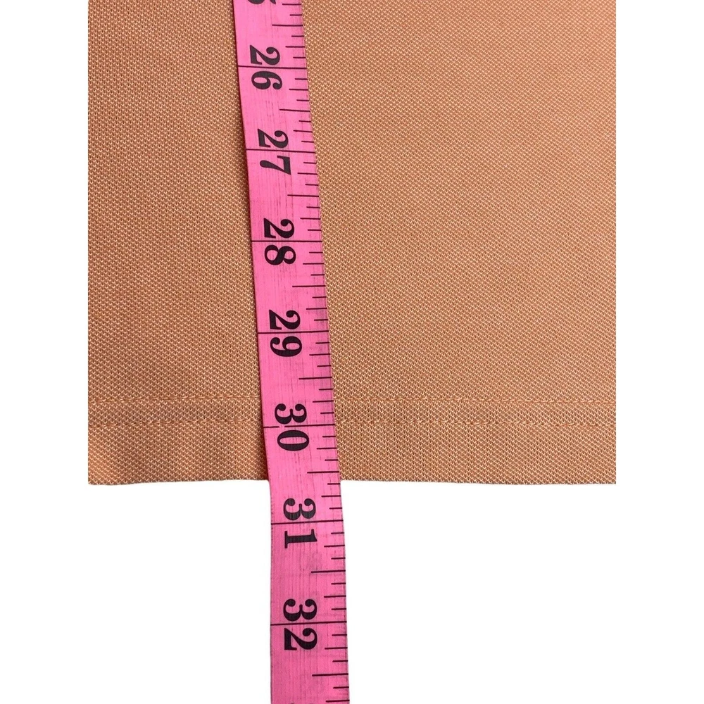 This polo is super comfortable and fits perfectly—great for golf or casual wear. The peach color is fresh, and the stretch fabric moves with you. No signs of wear, just a clean, crisp look. Love the textured collar details!