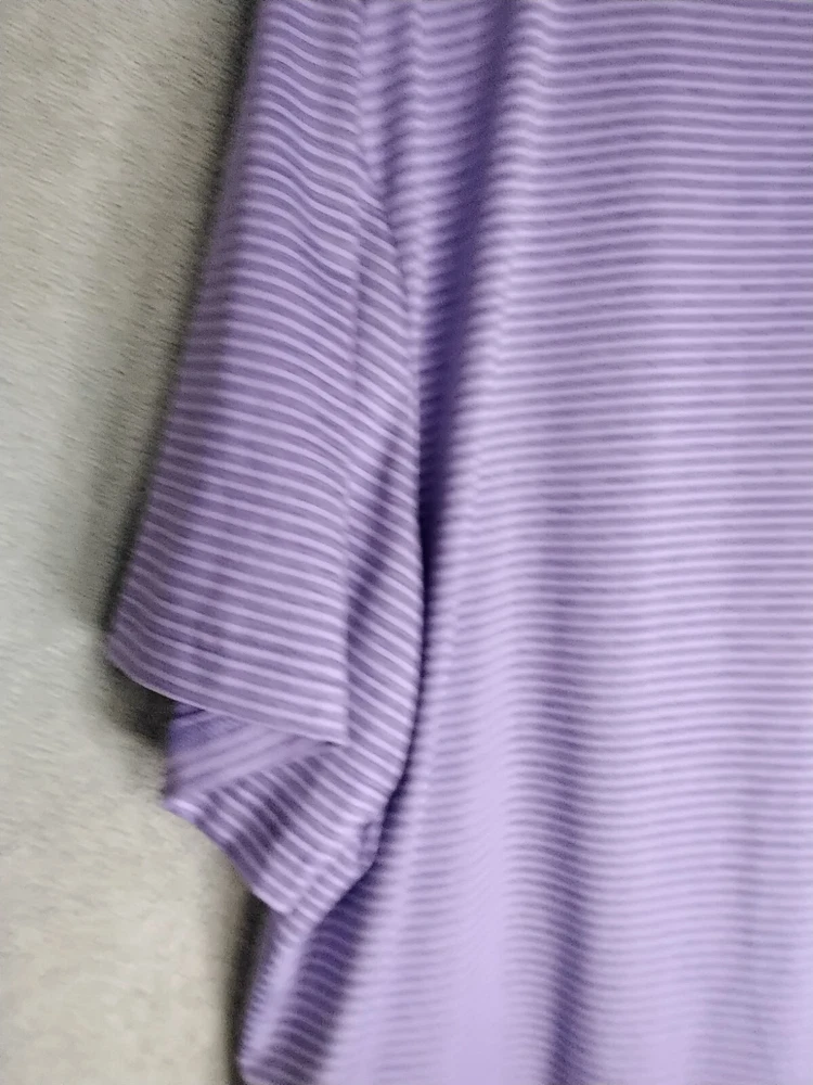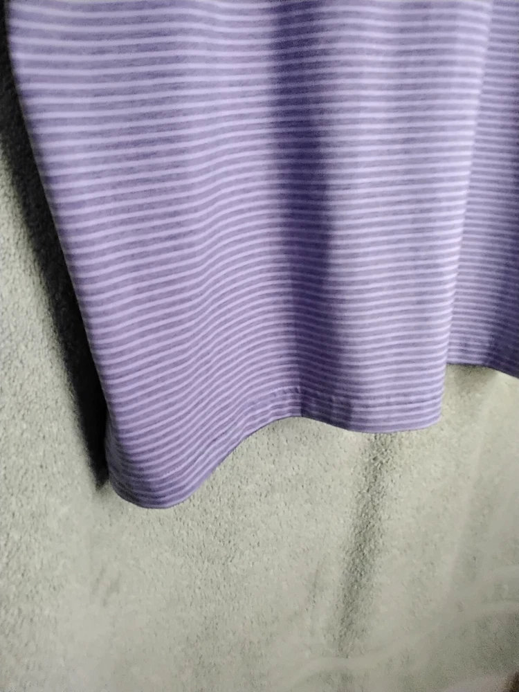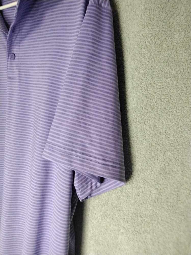 Closure: Button Season: Fall, Spring, Summer Neckline: Collared Model: performance Material: Polyester, Spandex Garment Care: Machine Washable Features: Breathable, Lightweight, Moisture Wicking Department: Men Collar Style: Button-Down Performance/Activity: Golf, tennis Sleeve Length: Short Sleeve Pattern: Striped Type: Polo Size: 2XL Size Type: Regular Brand: Member's Mark Fabric Type: Blended Fabric Fabric Wash: Medium Fit: Athletic Seller Notes: “In great condition,gently worn” Color: Purple Product Line: Members Mark Occasion: Activewear, Casual Theme: Classic, Outdoor