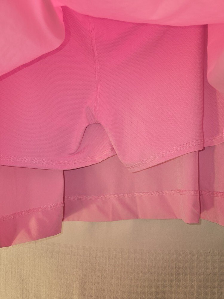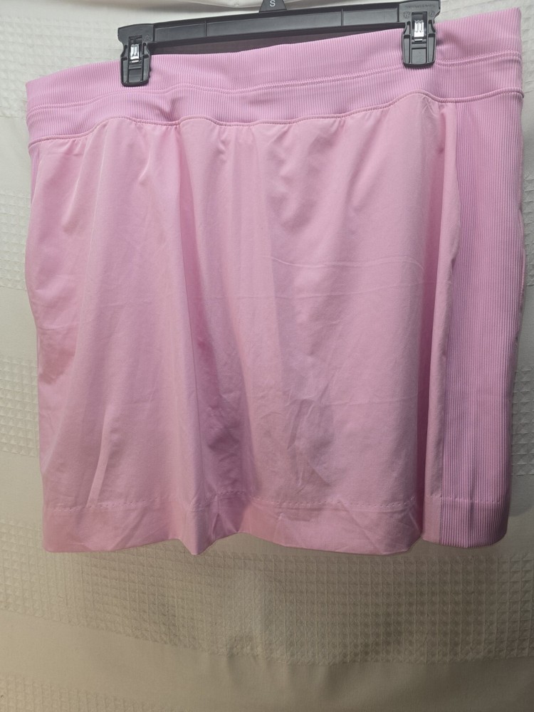 This casual women's Mini Skort by Member's Mark in tan color is designed for tennis and athletic activities. The skort features a zip closure, stretch fabric for comfort, and convenient pockets. It is available in size XXL, making it suitable for plus size women. The versatile style of this skort makes it perfect for both on and off the court wear, providing a blend of functionality and fashion for active women.