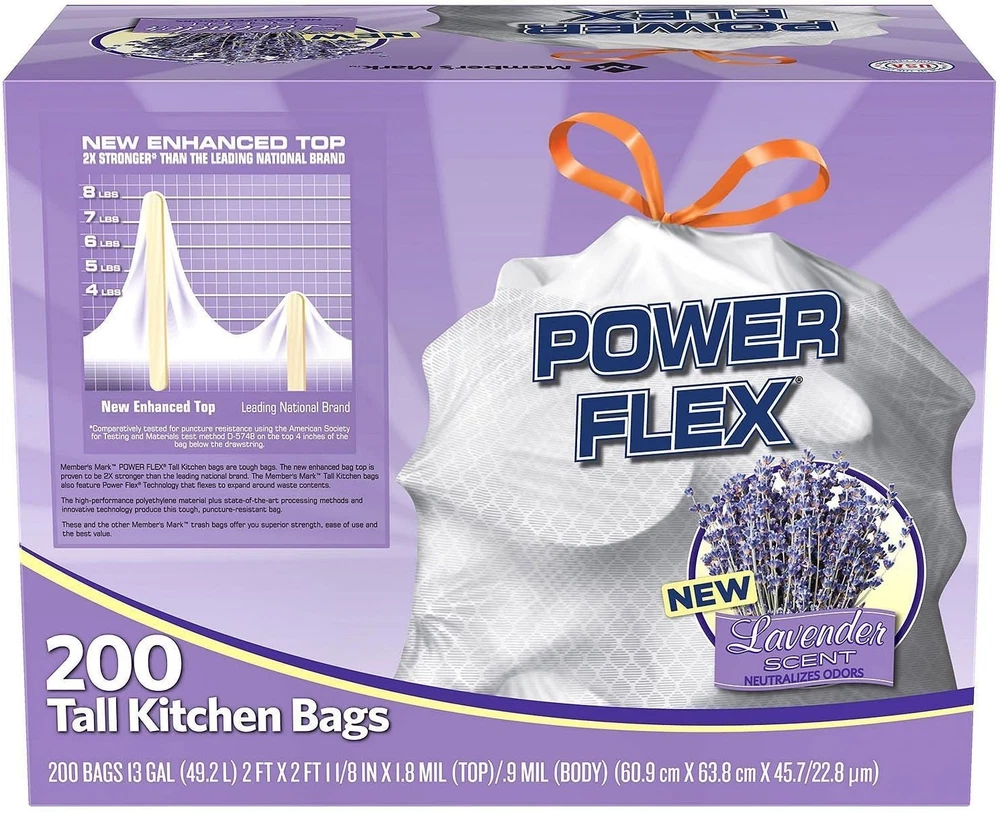 Members Mark Power Flex Tall Kitchen Drawstring Trash Bags (13 Gallon, 2 Rolls o