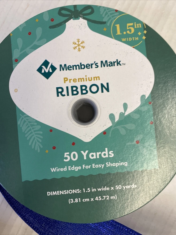 One roll of Members Mark Royal Blue Shimmery Wired Christmas Ribbon 50 Yards Long 1.5” Wide