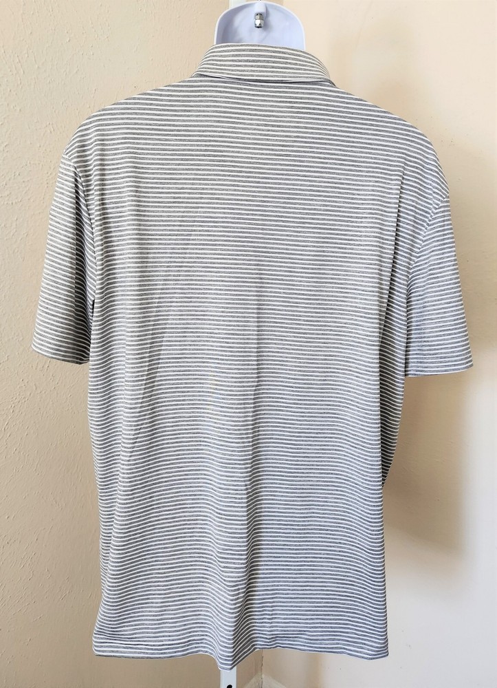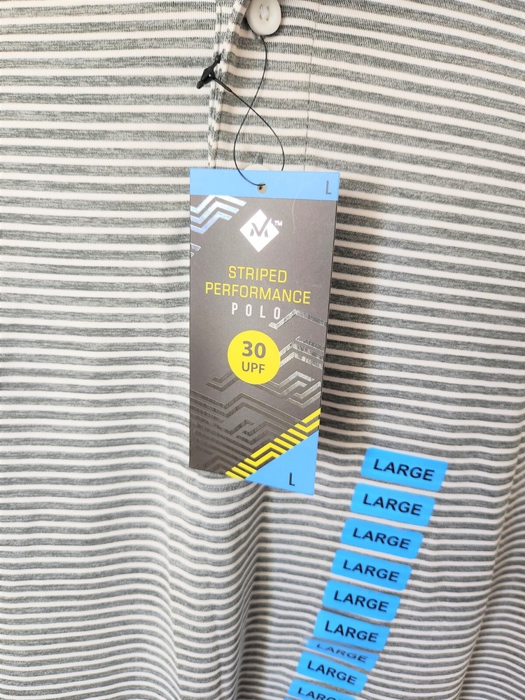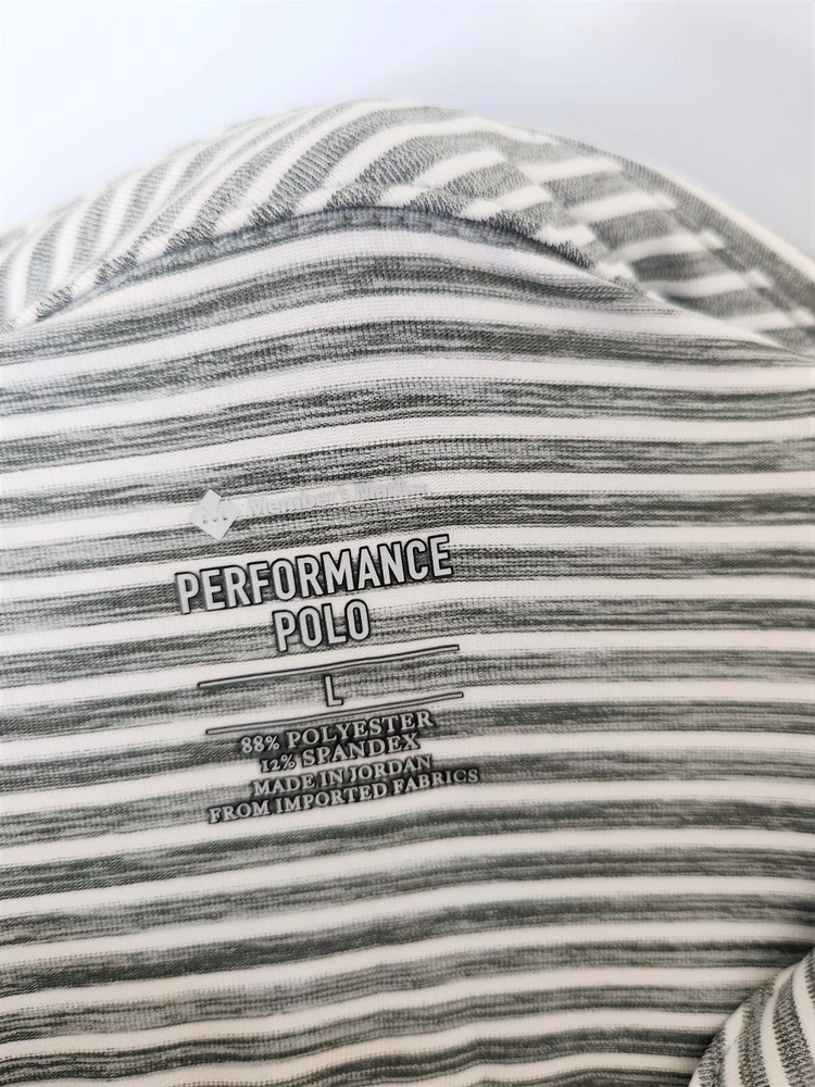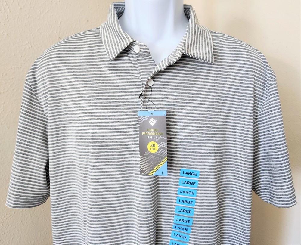 Members Mark Men's Stretch Active Performance Polo Golf Casual Shirt Striped L Member's Mark men's stretch active performance polo shirt. Gray & white striped, size large. New with tags. See all pics/close-ups. A fantastic addition to your wardrobe! The Member's Mark Stripe Performance Polo shirt is a versatile wardrobe staple for men who need a little extra from their clothes. Designed for comfort and performance, our Member's Mark polo shirt is made for the man on the move with a loose fit in a moisture-wicking stretch fabric that draws heat from your body to keep your skin cool. Whether you're in for a day of sales calls, a casual evening with friends or a few hours on the green, this performance polo keeps you feeling fresh and ready for anything. Comfort and Style All Day Long Perfect for a day at the office or a weekend at the golf course, this classic polo is a closet staple. Constructed from an incredibly soft heather jersey, our performance polos feature a handsome stripe design in a variety of colors, so you can wear a different color every day of the week. This performance polo shirt won't cling or chafe and also offers UV protection. The loose fit and fuller cut features 4-way stretch for complete comfort. Material and Care 88% polyester/12% spandex The shirt is constructed from a heather jersey material for a super-soft feel and a little spandex for stretch. Machine wash cold, non-chlorine bleach when needed, tumble dry low. Do not iron, wash dark colors separately or with like colors, gentle cycle with like colors. Remove promptly after wash, do not soak, do not bleach Is a performance polo different from a regular polo shirt? Yes! Our Member's Mark performance polo takes comfort to the next level with everything from fit to fabric. The performance polo is designed for an active lifestyle, so it takes the comfort and attractive look of a polo with the added features of moisture-wicking fabric, 4-way stretch and UV protection. Now you can look good and stay comfortable even longer whether you're in a busy workplace or catching some sun with the family at the park. Half-sleeve polo with 3-button placket 4-way stretch construction moves better in all directions Fabric dries faster, won't cling to you, won't chafe and stretches without absorbing sweat Sweat-wicking material keeps you dry and comfortable UV protection Heather jersey construction; 88% polyester/12% spandex Machine wash You can click here to see all items in our store! We are adding new items daily, so make sure to visit and add us to your favorite sellers to receive notifications of new arrivals ! We love to combine shipping, and offer discounts, and/or free shipping on multiple purchases! Please message us before purchasing so we may combine your orders and lower your shipping costs! PACKED SAFELY, SHIPPED PROMPTLY. SATISFACTION GUARANTEED OR WE REFUND WITH A SMILE. THANKS AND ENJOY!