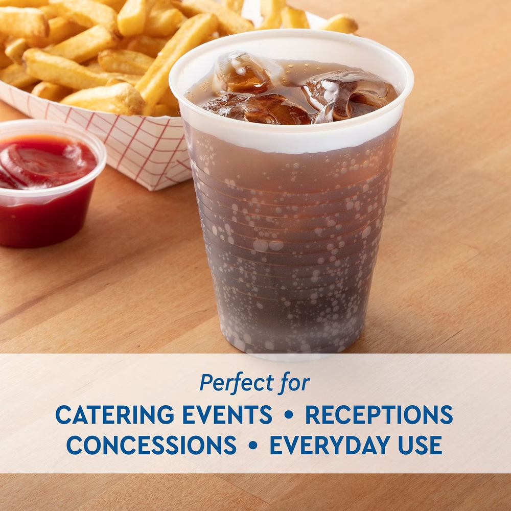 Product details When you're serving drinks to a crowd, choose Member's Mark™ Translucent Plastic Cups. These cups are made for parties, tailgating, poolside, camping, picnics or just everyday use. Disposable cups save you time and energy that you'd otherwise spend washing dishes. Ideal for stocking beverage stations in cafes, restaurants and concession stands Member's Mark™ Translucent Plastic Cups are great for indoor/outdoor use. Each one of these 12-ounce disposable clear cups is made of heavy-duty plastic for increased durability. The cups are lightweight, so they're easy to take along in a picnic basket or on a road trip. And with 300 cups in this package, you'll have plenty to keep on hand. No matter what the occasion, it's handy to have these cups around. They're terrific for family gatherings. neighborhood barbecues, picnics, birthday parties, receptions, tailgating and more. Alternatively, they can also be used to organize office, home and craft supplies. Want to minimize waste? Reuse shatter-resistant Member's Mark cups throughout the day. Just write names or initials on the outside of the cups so that everyone can clearly see which cup is theirs. At the office, ask employees to reuse their cups throughout the workday to reduce waste and minimize restocking costs.