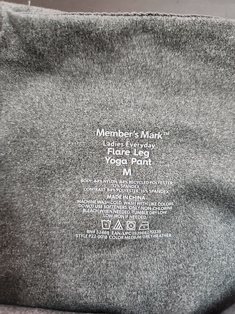 Type: Pants Style: Flare Pant Color: Gray Closure: Pull On Occasion: Activewear, Casual, Travel Waist Size: 28 in Features: Moisture Wicking, Stretch Performance/Activity: Gym & Training, Hiking, Walking, Yoga Garment Care: Machine Washable Department: Women Size: M Material: Polyester Blend Leg Style: Flared Brand: Member's Mark Size Type: Regular Season: Fall, Spring, Summer, Winter Inseam: 31 in