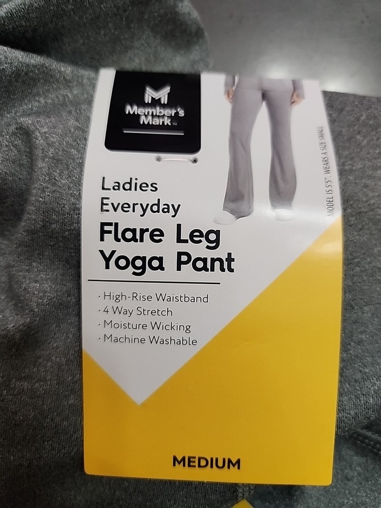 Members Mark Everyday Flare Yoga Pants Women M Gray 4 Way Stretch High Rise NEW Please check measurements below before purchasing. WAIST LAID FLAT 14" LEG OPENING 11" RISE 9.5" INSEAM 31"