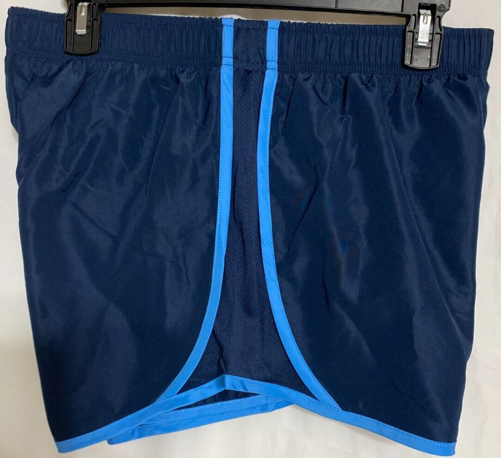 Fit:AthleticTheme:OutdoorPerformance/Activity:Running & JoggingBrand:ActiveStyle:AthleticSize:MColor:NAVY BLUE TRIMMED IN LIGHT BLUESize Type:RegularOccasion:ActivewearDepartment:WomenFeatures:BUILT IN PANTY LINER AND MEDIA POCKET