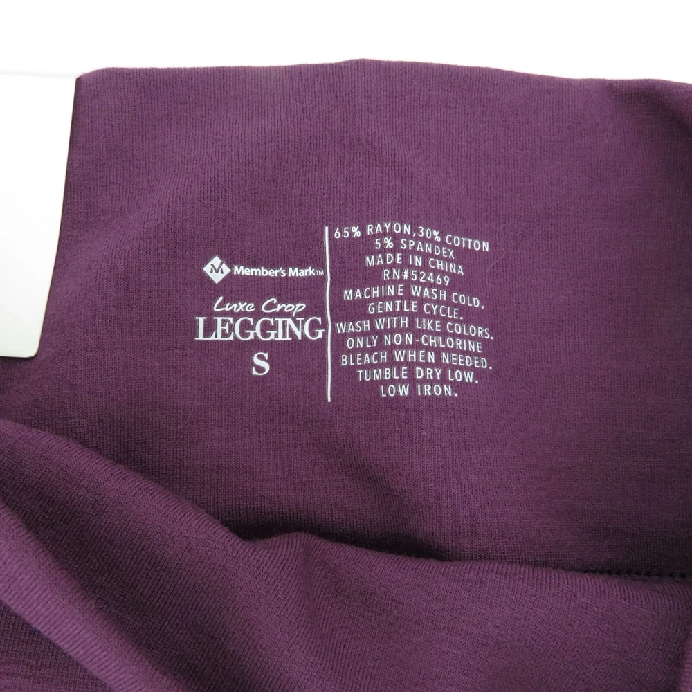 Features: • Brand: Members Mark • Color: Purple • Closure: Pull On • Fit: Regular • Soft & Stretchy • Wide Waistband • Everyday Comfort • Material: 65% Rayon • Material: 30% Cotton • Material: 5% Spandex • Pattern: Solid • Style: Crop Leggings • Season: All • Machine Wash • Made in China Size: Womens S Condition: New With Tags Bin: 2658 - White C