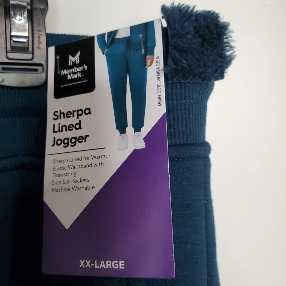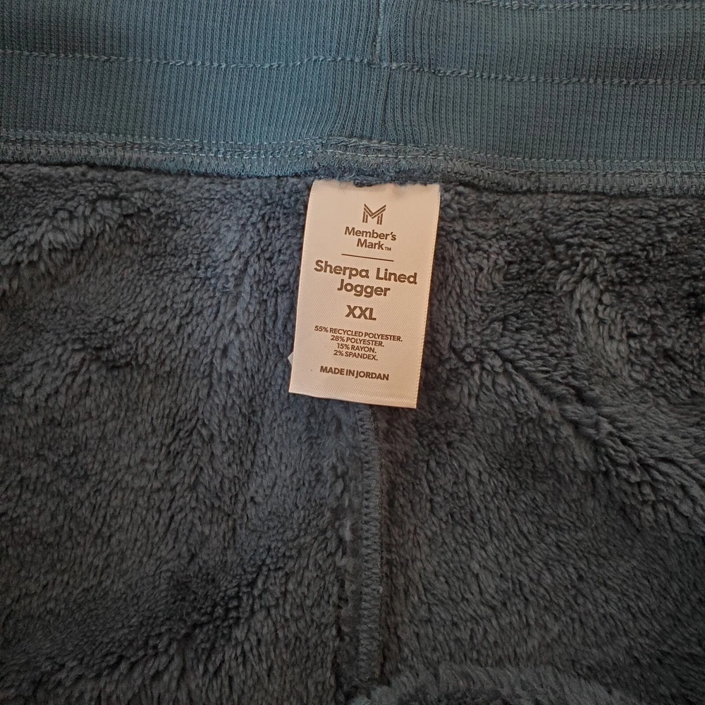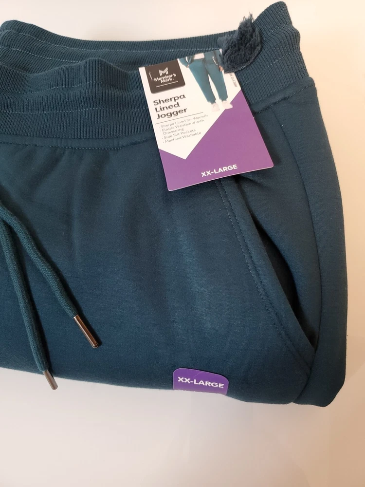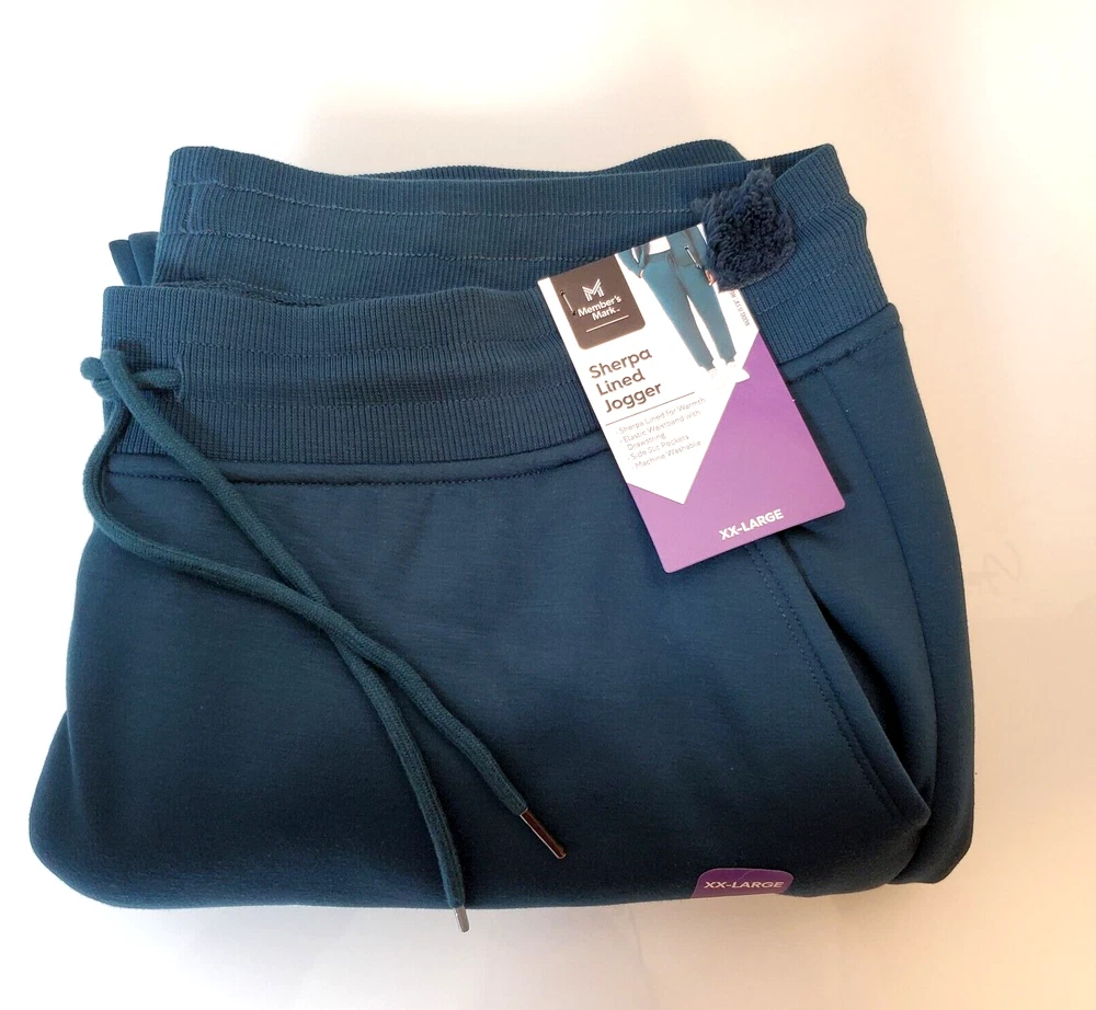 Members Mark Women's Gem Slate Blue Sherpa Lined Elastic Waist with Drawstring and front slat pockets Joggers SZ XXL Soft. NWT. Measurements: Waist 40" and Inseam 27". Ships USPS Ground Advantage. B5 19
