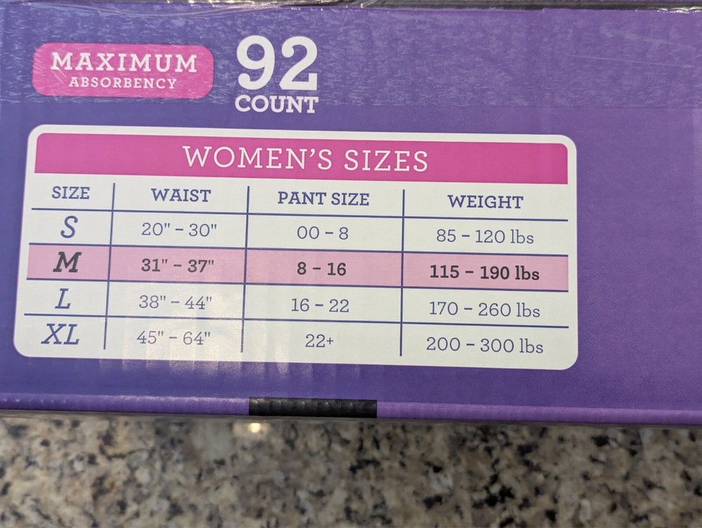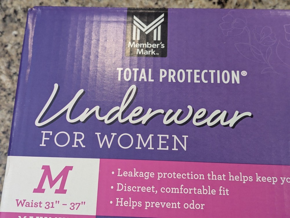 Members Mark Total Protection Underwear for Women 92 count size M 31-37"