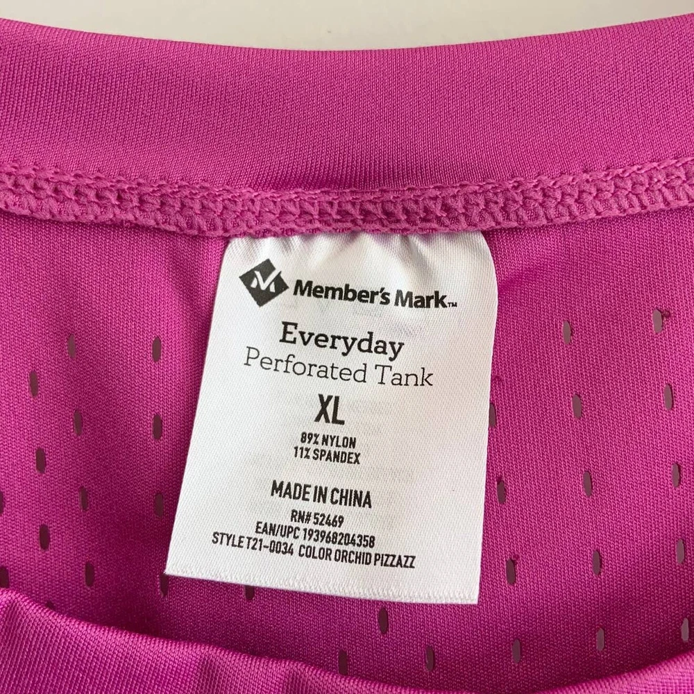 Members Mark XL Everyday Perforated ActiveTank New with tags! Performance stretch Moisture wicking Semi-fitted High low hem with side slits Color: Orchid Approximate Measurements Pit to Pit: 20.75" Length: 24.5" Smoke-free, pet-free home Please let me know if you have any questions!