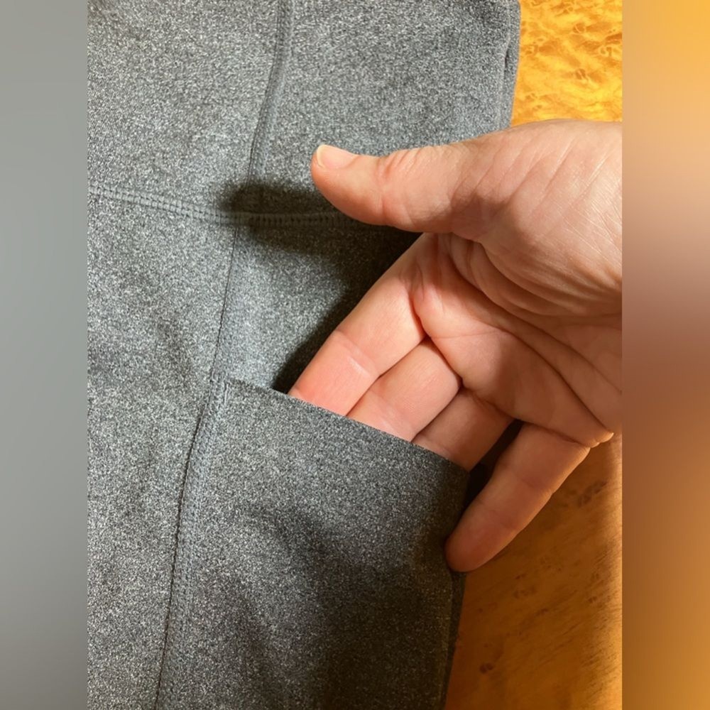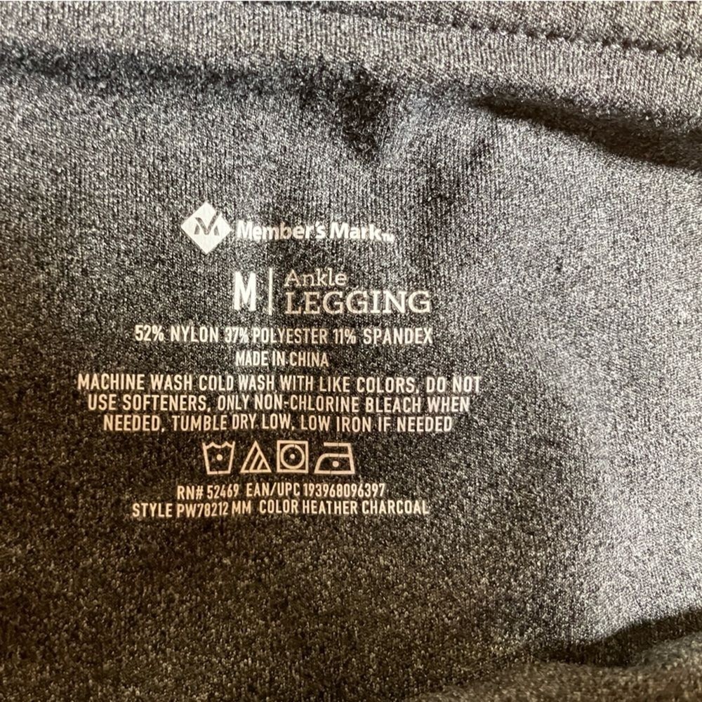 These Members Mark ankle leggings are dark gray. They have pockets, are in excellent condition, and there are a women’s size medium