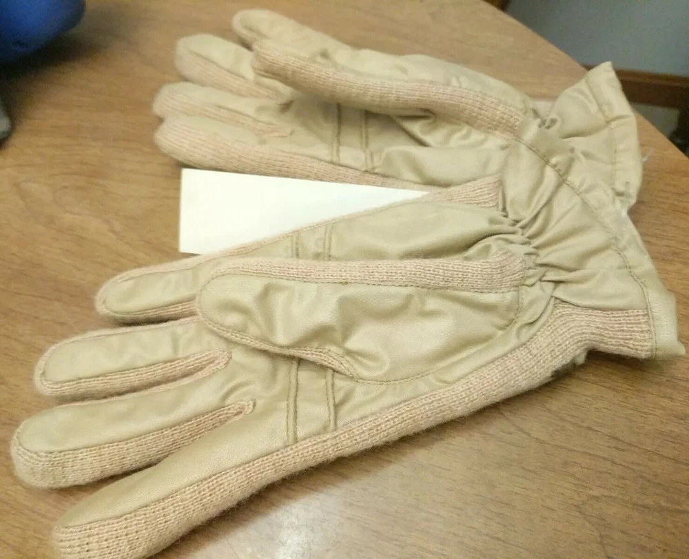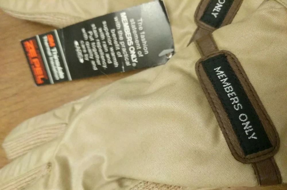 Up for bid is a nice, new pair of Members Only Aris Winter Thinsulate Gloves womens tan, size medium / large. They are a medium tan xolir and arex knit amd polyester material. Thry are zepel anf have rain and stain duponf protection. They sre new with tags.