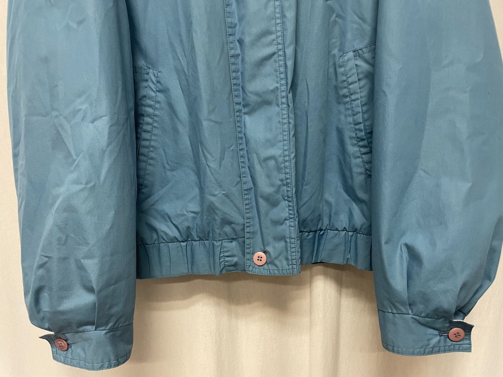 This is a Men's Members Only Jacket in size 44, featuring a removable polyester lining. The jacket is blue in color with a cotton outer shell and polyester lining. It is a bomber style jacket with regular sizing, suitable for everyday wear. Armpit to armpit is 26 Shoulder seam to shoulder seam is 21 Sleeve length from the shoulder seam is 24.5 Length in the rear from the collar seam is 26