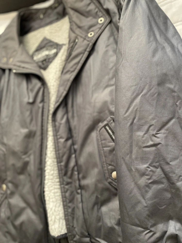 Outer Shell Material:PolyesterSize Type:RegularType:JacketFeatures:InsulatedStyle:Bomber JacketDepartment:MenBrand:Members OnlySeller Notes:“Is a nice jacket. Needs cleaning. Has a small stain on the right sleeve. See photo.”Color:GraySize:40