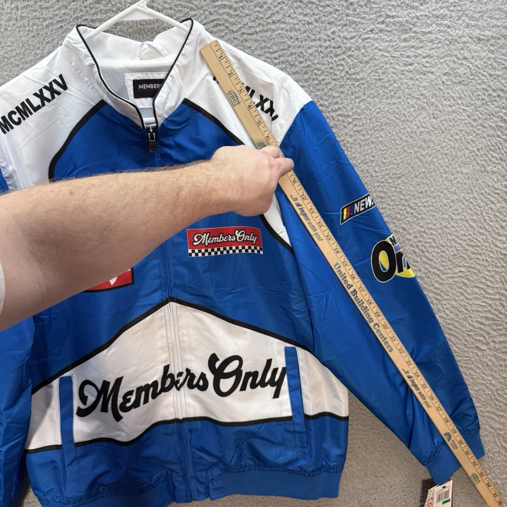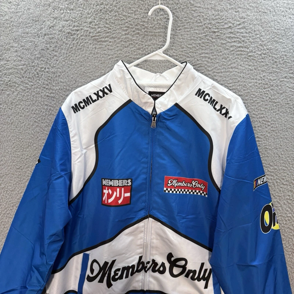 Members Only Jacket Adult Large Blue White Sport Windbreaker Racing Y2K New