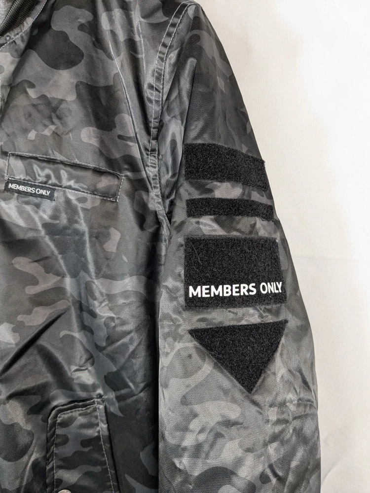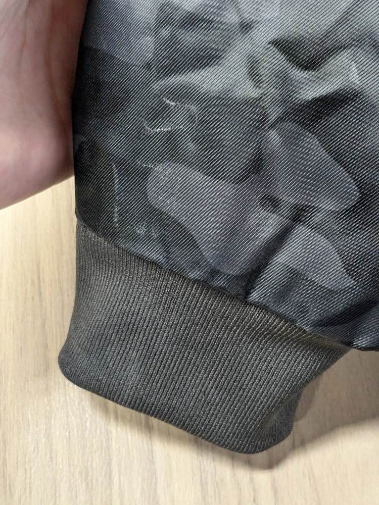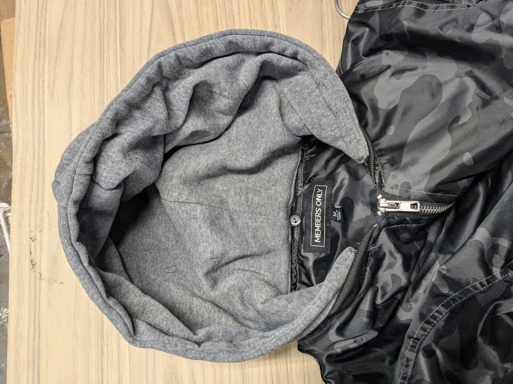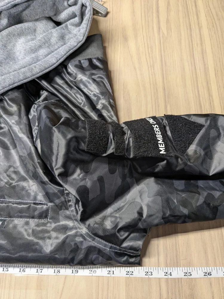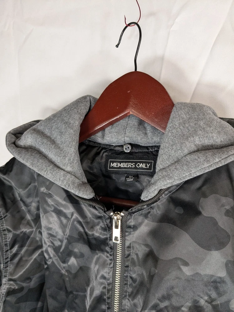 Great pre-owned condition (please see photos) Information • Flaws: No stains or holes. • Style: Grey Black Camo Flight Satin Twill Hooded Jacket Long Sleeve Soft Comfy • Please see photos for measurements in inches. • Material: 100% Polyester • Washing Instructions: Machine Wash • Size: Medium • We are happy to answer your questions! 2 day shipping. Business days are Monday-Friday and exclude weekends and public holidays. All items in my store are purchased second hand. I may miss flaws but I try my best to find everything possibly wrong with it. Thank you for viewing our listing! Have a great day! If you want to negotiate a price, please send an offer.