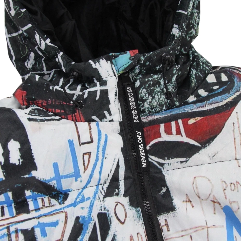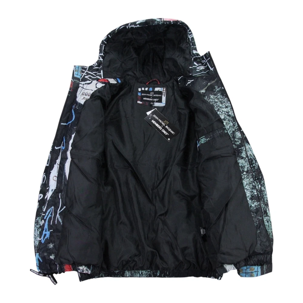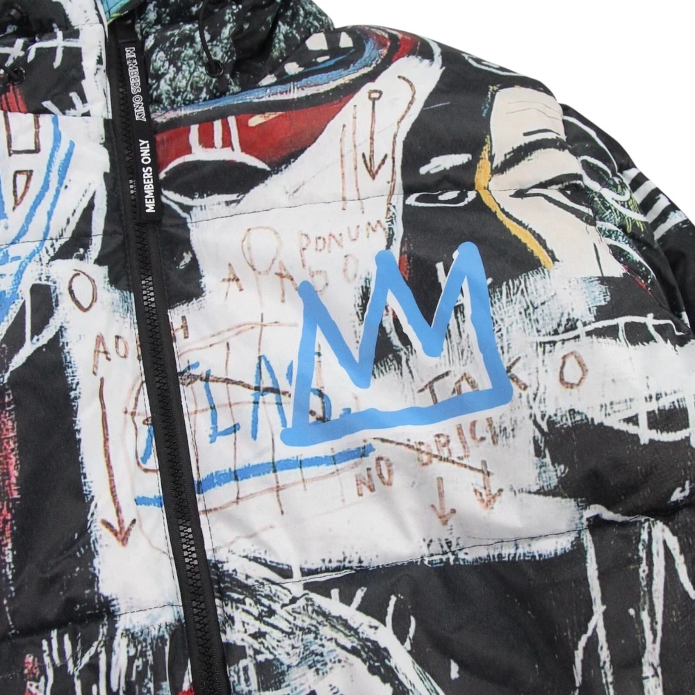 Members Only Jean-Michel Basquiat Jacket Medium Black Hooded Puffer Quilted BNWT Mens Medium Armpit - Armpit = 24 inches Length (back, bottom of hood to hem) = 28 inches Shoulder - Shoulder = 20.5 inches Shoulder - Cuff = 26 inches Armpit - Cuff = 19.5 inches Features: Premium construction. Full zip fastening. Adjustable hood. Jean-Michel Basquiat all-over artwork print. Front & internal pockets. Fully lined. Elasticated cuffs & waistline. Quilted lining. Fabric : Shell, lining & filling = 100% Polyester. Colour : Black. Condition : Brand new with tags. There has been a repair along the front (please see picture 4). Free UK postage.