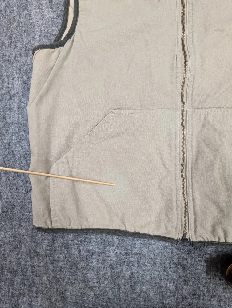 Members Only Vest Sz Large Quilted Lined Full Zip Flaw Note: There are two small spots on the right front pocket. They can be seen in the pictures provided.