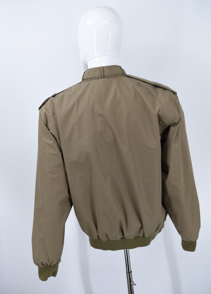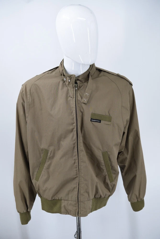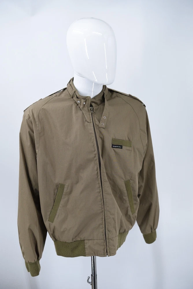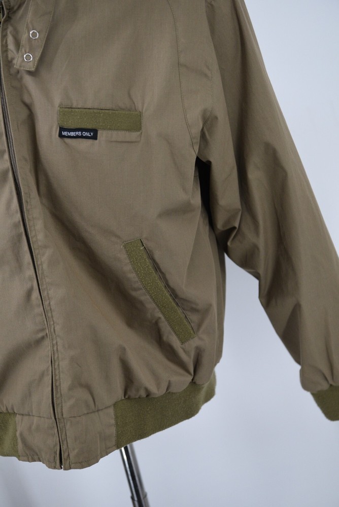Members Only Jacket DESCRIPTION - Snap tab collar - Snap epaulets - Rib knit cuffs, pocket trim & waist BRAND: Members Only ~MEASUREMENTS: Chest: 24.5" (pit to pit) Length: 27" (back collar seam to hem) MATERIALS: Shell: 65% cotton / 35% polyester Lining: 100% polyester STYLE: Full Zip Bomber Jacket SIZE: Mens Medium COLOR(S): Light Brown CONDITION: Pre Owned / Exactly as pictured - please message with any questions or for more photos AUTHENTICITY: ALL ITEMS ARE 100% Authentic. Thank you so much for checking the store out, Feel free to check out our other items! SHIPPING All US orders will be shipped via USPS ground advantage mail. All international orders will be shipped via Ebay's Global shipping program. Will ship within 3 (typically 1-2) business days of payment. Shipping includes insurance. PAYMENT All Ebay Accepted Forms of Payment RETURN 14 day returns - buyer pays return shipping EXCHANGE No exchanges. CANCELLATION Possible cancellation upon request CONTACT Please email with any questions or for more photos. We appreciate your feedback.