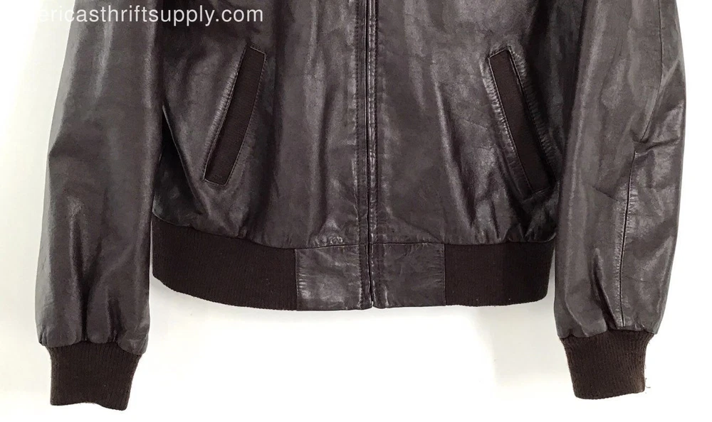 **Title:** Members Only Men's Brown Leather Bomber Jacket - Size 44 **Product Details:** - Brand: Members Only - Country of Manufacture: Korea - Condition: Used - Good shows signs of wear - Size: 44 - Color: Brown - Pattern: Solid - Material: Leather **Measurements:** - Pit to Pit: 23.5 inches Condition of item is as pictured. Some scratches, scuffs, and other blemishes may exist in keeping with the item's age. Please see images for added details and reach out with questions before making a bid! Combined Shipment: We offer combined shipping for select items containing multiple items. Not all items are eligible for combined shipping. Some items may be excluded from combined shipping rate adjustments. In order to receive your combined shipping discount, please send us a message requesting for a new invoice with the shipping discount. Customer Service Hours of Operation: Monday - Friday from 8 AM - 4 PM CT. Pick-up Hours of Operation: Tuesday - Friday from 9 AM - 4Pm CT. We are closed daily between 12:30 PM - 1:30 PM for lunch. Please message us 24 hours prior to your arrival to ensure your order is ready upon arrival. Orders are shipped Monday - Friday during business hours. We do our best to get back to you in less than 24 hours. If you are contacting us on the weekend, please allow up to 1 Business day to receive a response. We care about your concerns and will get back to you as soon as possible! Thank you for your purchase from America's Thrift Stores Online! Visit shopATS.com for unique secondhand treasures, gems, and one of a kind collectibles from America's Thrift Stores, all posted daily! Enjoying your purchase? Please consider leaving us a review!