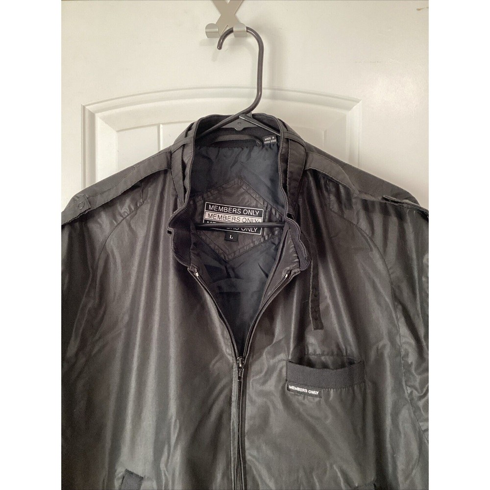 Elevate your wardrobe with this iconic Members Only Racer Jacket in Dusty Sky. Made with lightweight polyester material and a full zip closure, this bomber jacket is perfect for walking in any season, be it summer, fall or spring. The solid pattern and dusty sky color make it a versatile addition to any outfit. The jacket features the Members Only brand logo and is a regular fit size L. It is not handmade and is part of the Members Only product line. Perfect for any casual occasion, this jacket is a must-have for any fashion-forward man.