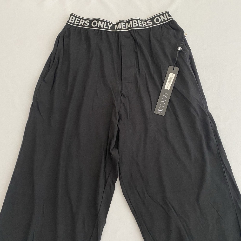 Brand new and never worn with tags attached and in original bag shipped from warehouse. Comfortable lounge pants designed with bold logo lettering at the waistband. For men but can definitely be used as super comfy lounge pants by women as the fly is buttoned up! Elasticized logo waistband Pull-on style Button fly Side slip pockets Cotton/viscose Size Small Waist laid flat 13” Inseam 29.5” Retail price $36.00 Loungewear