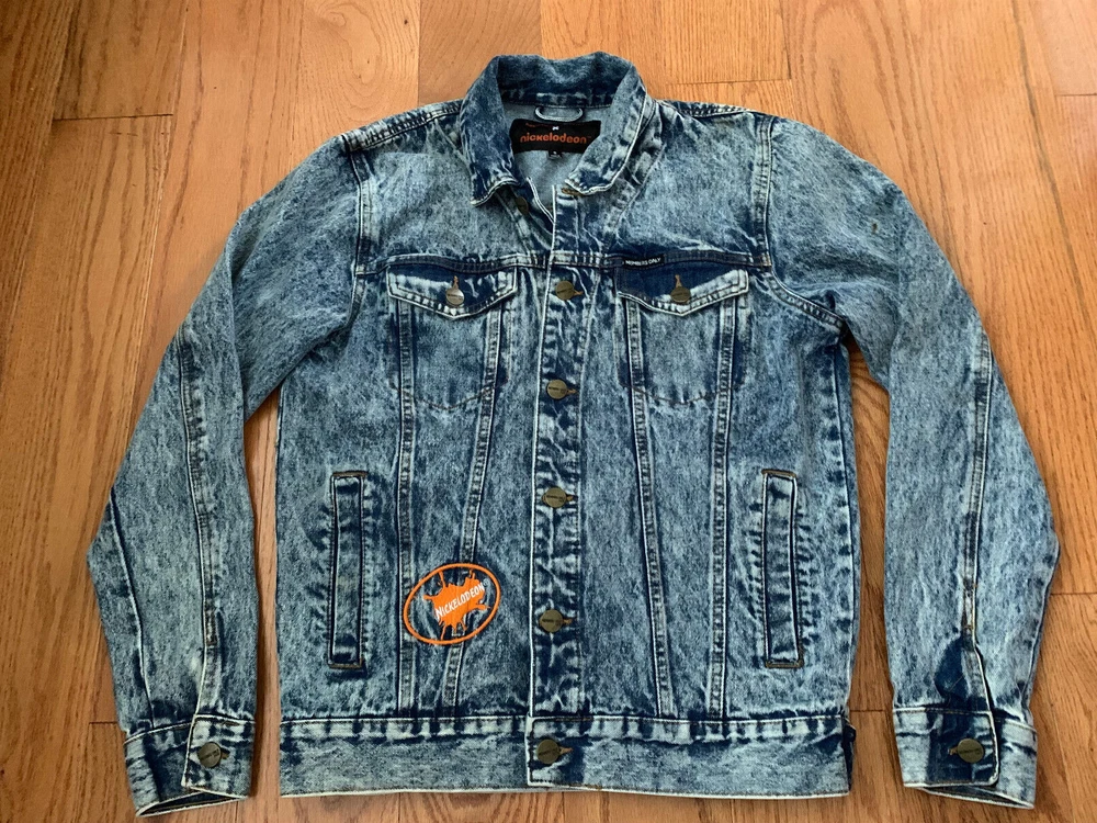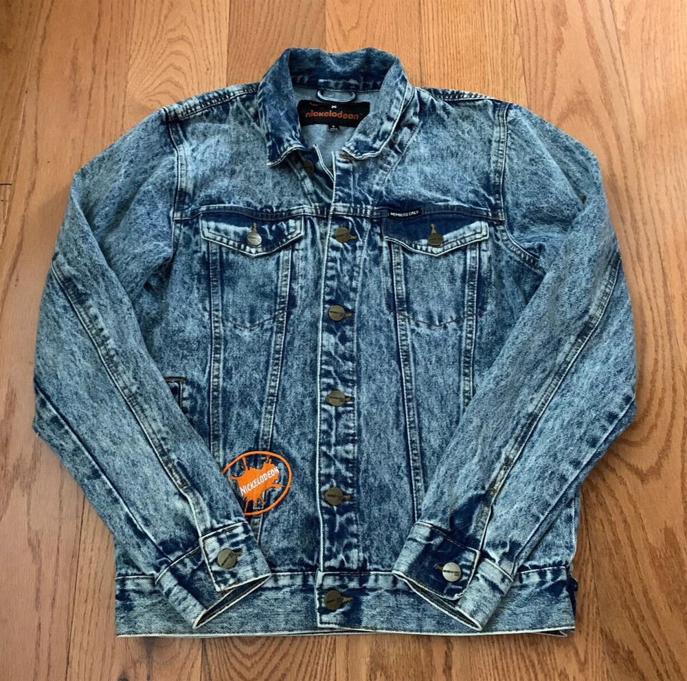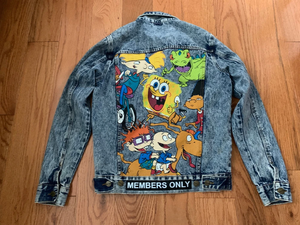 Members Only Nickelodeon Jacket Men Small Denim Blue Jean Heavy Cartoon TV VTG