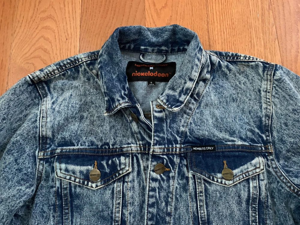 Brand: Members Only / Nickelodeon Condition: Good condition, gently worn. Looks Unworn! Marked a size Small Measurements: 38" chest, 26" length and sleeves are 26". Cool Vintage Acid Wash Jacket!