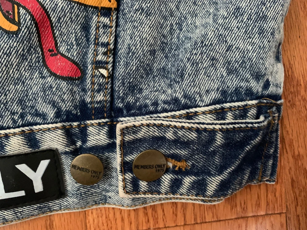 Theme: 90s, Cartoon Closure: Button Department: Men Handmade: No Personalize: No Style: Bomber Jacket Fit: Regular Country/Region of Manufacture: United States Jacket/Coat Length: Short Occasion: Casual Vintage: Yes Fabric Type: Denim Color: Blue Type: Jacket Outer Shell Material: Cotton Size: S Brand: Members Only Size Type: Regular Season: Fall, Spring, Summer, Winter Features: Button Pattern: Solid