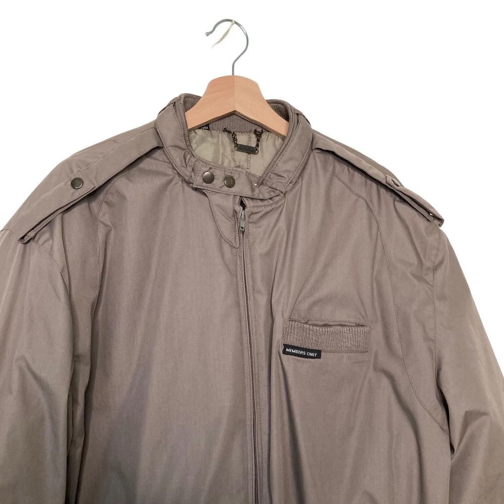 Members Only Vintage Jacket Mens Size LT Taupe Bomber Cafe Racer Full Zip. Thick and warm. Size Large Tall Excellent preloved vintage condition 7669