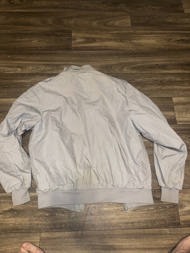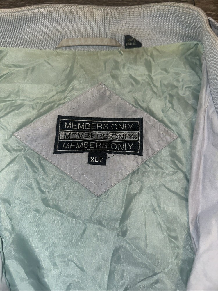 The Members Only Jacket in gray is a type of outerwear for men. It is a regular size XLT and is made for those who want to look stylish and unique. Front stains pictured. No attempt to clean or remove has been made