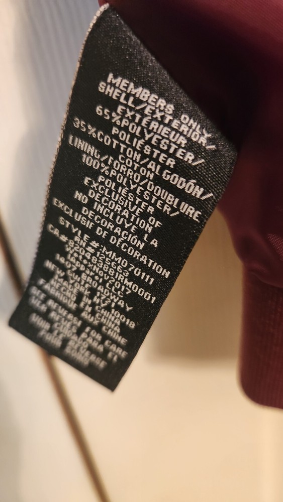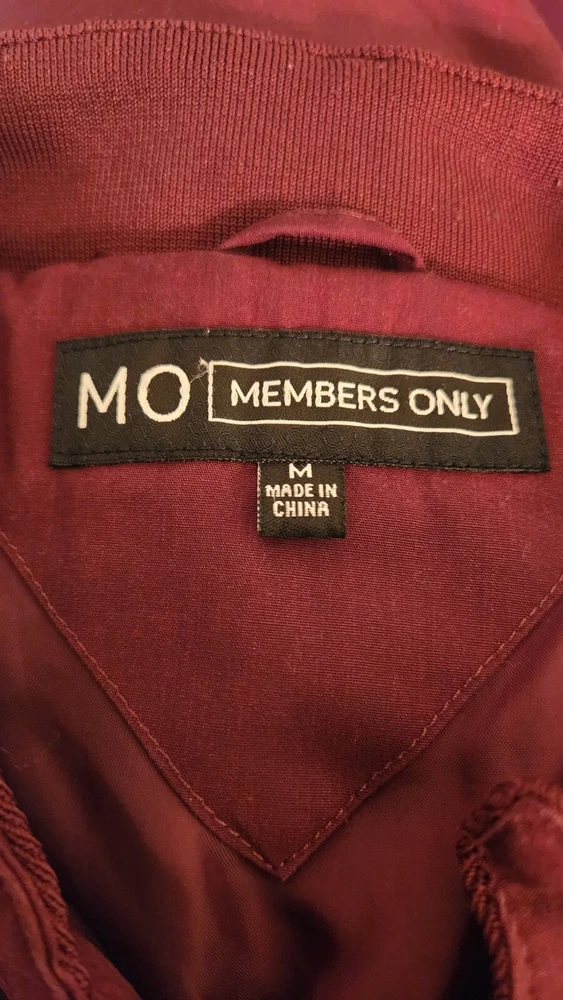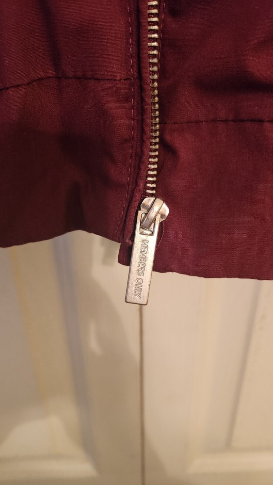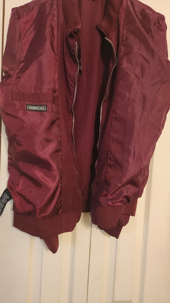 Size:MSize Type:RegularModel:Members Only burgandyOuter Shell Material:Cotton BlendColor:burgandyDepartment:MenStyle:Bomber JacketType:JacketBrand:Members Only