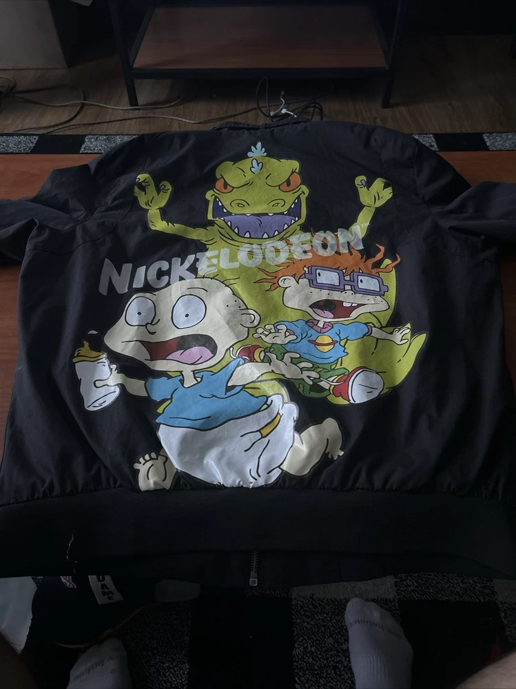 members only x nickelodeon Jacket Sz L Rugrats Back Hit Black Zip Up Bomber