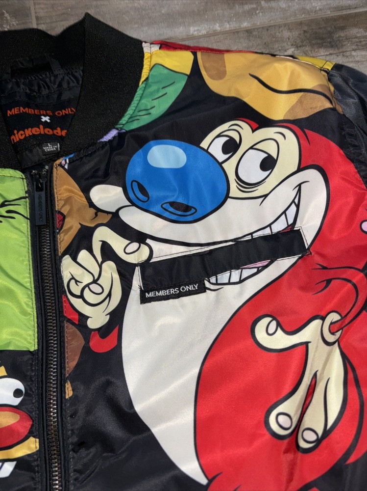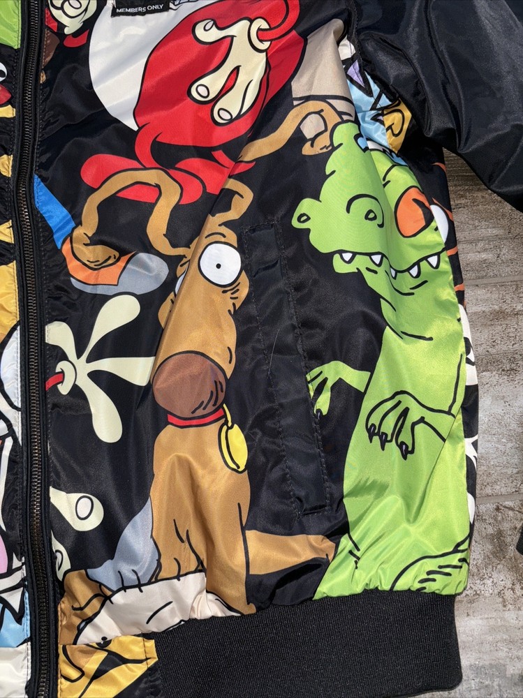 Members Only x Nickelodeon Rugrats Hey Arnold Stimpy Bomber Jacket Size L EUC