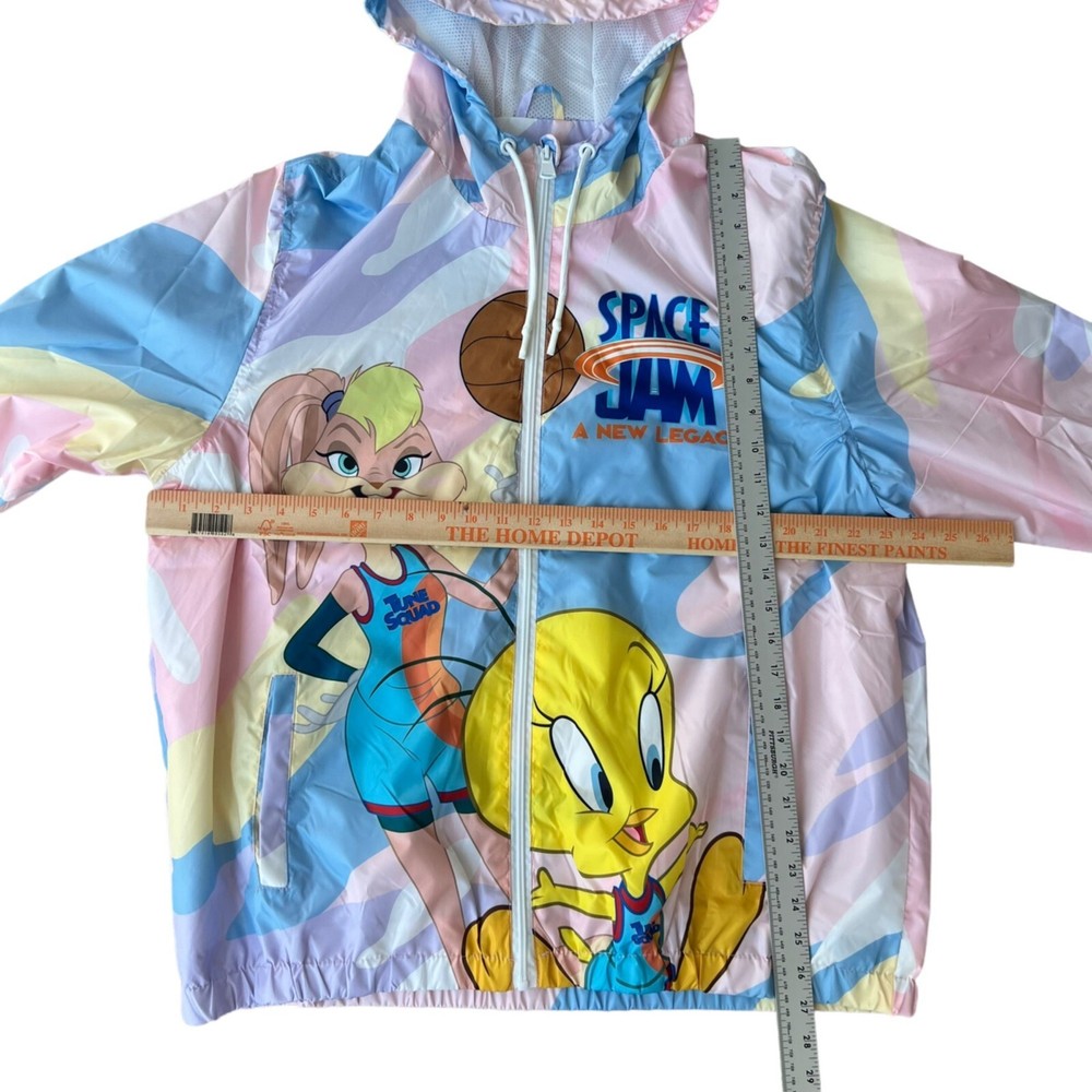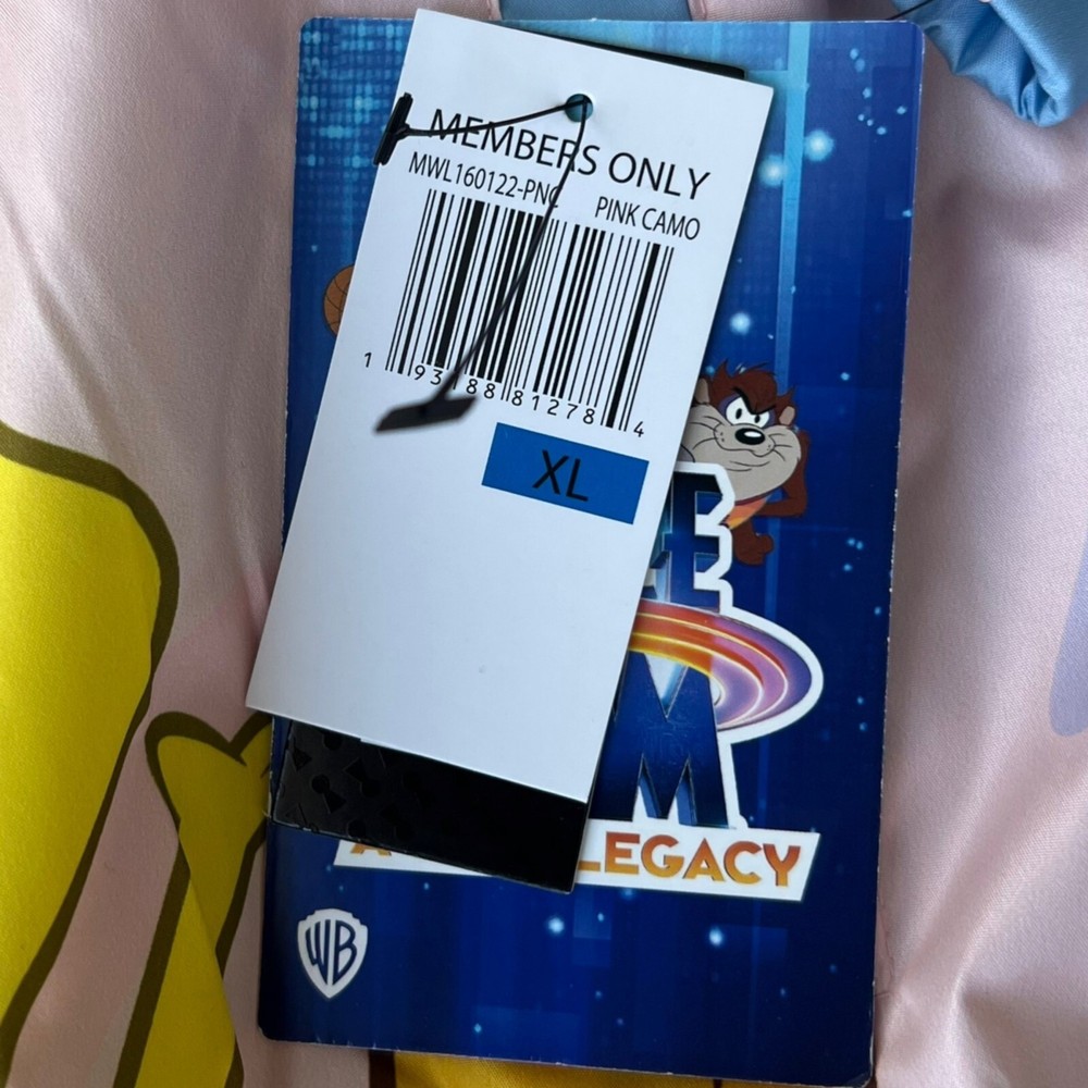 Brand: Members Only x Space Jam A New Legacy Full Zip Windbreaker MWL160122-PNC Color: Pink / Blue / White / Multicolor Gender: Unisex Size: Extra Large (XL) Condition: This jacket is new with tags condition. It is free of any rips, tears, or stains unless otherwise noted below. Please refer to all photos. Ship Time: The item will be shipped the next business day. The Members Only x Space Jam A New Legacy Full Zip Windbreaker is a stylish and functional windbreaker inspired by the iconic movie franchise. This windbreaker features a unique design collaboration with Lola Bunny and Tweety, adding a fun and nostalgic touch to your wardrobe. Product Features: - Full zip closure for easy on and off. - Lightweight and breathable fabric for comfortable wear. - Elastic cuffs and hem for a secure fit and added protection against the wind. - Two front pockets for convenient storage of small essentials. - Hood with adjustable drawstring for customizable coverage. - Bold and vibrant graphics featuring Lola Bunny and Tweety, adding a playful and nostalgic touch. - Perfect for outdoor activities or casual wear, providing wind resistance and style. - Made with high-quality materials for durability and long-lasting use. - Officially licensed Space Jam merchandise, showcasing your love for the classic film franchise.All pre-owned clothing items are cleaned per eBay standards.