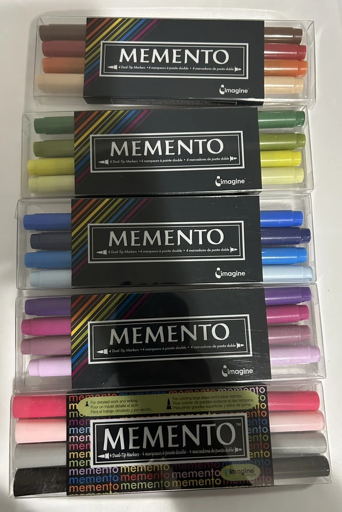 Memento Marker Pens Lot Of 5- 4 Pack Dual-Tip Pens Crafting Scrapbooking Comes with the following color packs: Arizona Canyons, Greenhouse, Ocean, Juicy Purples and Girls’ Night Out. All pens are new and unused.