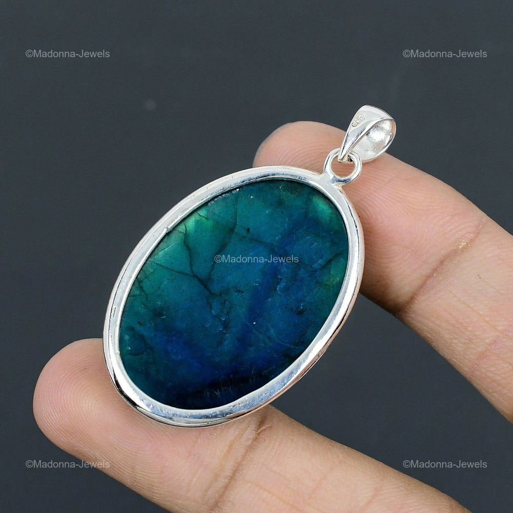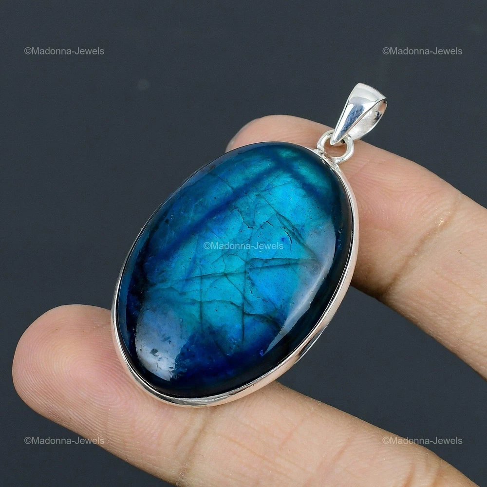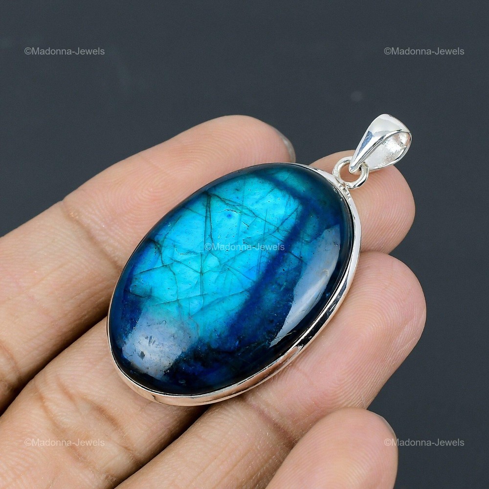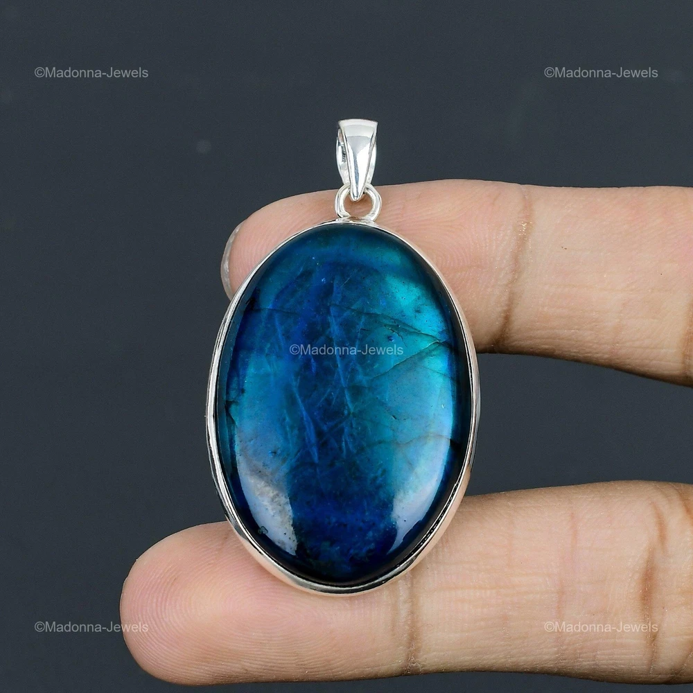 Welcome to Madonna Jewels Memorial Day Sale Neon Flash Labradorite Gemstone 925 Silver Anniversary Pendant Handmade Pendant, Sterling Silver Pendant, Neon Flash Labradorite Pendant, Handcrafted Pendant SKU : VP-61 Gemstone : Neon Flash Labradorite Stone Shape : Oval Metal Purity : 925 Sterling Silver Length : 54 Millimeters Width : 30 Millimeters Silver Jewelry is a popular choice for many people due to its unique properties and numerous benefits. Here are some of the key properties and benefits of wearing silver jewelry: Properties: Durability: Silver is a durable metal that can withstand regular wear and tear. Malleability: Silver is highly malleable, which means it can be easily shaped and molded into various designs. Conductivity: Silver is an excellent conductor of heat and electricity. Anti-bacterial: Silver has natural anti-bacterial properties, which can help prevent the growth of harmful bacteria. Benefits: Aesthetic appeal: Silver jewelry is known for its beauty and versatility, and can be worn with a variety of outfits and styles. Hypoallergenic: Silver is generally hypoallergenic, which means it is unlikely to cause an allergic reaction in most people. Healing properties: Some people believe that wearing silver jewelry can help with various physical and emotional conditions, such as arthritis, anxiety, and depression. Spiritual significance: Silver has been used in various cultures for its spiritual and symbolic significance, and wearing silver jewelry can help to connect with these traditions. Investment value: Silver is a precious metal that retains its value over time, and investing in silver jewelry can be a smart financial decision. Overall, silver jewelry offers a unique combination of beauty, durability, and benefits, making it a popular choice for people around the world. For Mother's Day Gift For Father's Day Gift For Promise For Valentine' Day For Halloween Party For Christmas Day Gift For New Year Party For Mom For Her If you can't find the information you need or need some advice for your design? Feel free to contact us. We are fast to reply :) All our work is made by hand with Love and Care in our workshop Thank you so much for visiting and hope you enjoy shopping with us Madonna Jewels is dedicated to providing customers with high-quality sterling silver jewelry. As a manufacturer of handmade jewelry, we offer an extensive range of silver gemstone jewelry that demonstrates our exceptional craftsmanship. We are skilled in adorning gemstones to complement any style, and we give you the freedom to design your own jewelry collection with dazzling, natural, and genuine gemstones. Our talented craftsmen carefully handcraft each jewelry piece, ensuring that it is unique and made with authentic gemstones. The jewelry item you see on our website is precisely the same one you will receive.