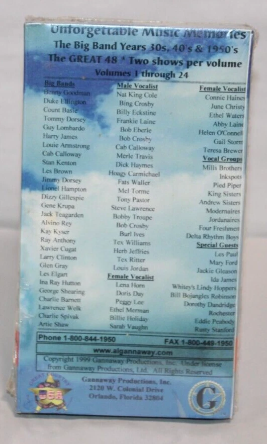 Genre: Music & Concerts Rating: NR Language: English UPC: NA Signal Standard: NTSC Movie/TV Title: Memories of the Unforgettable 30’s, 40’s and 50’s: The Big Band Y Studio: Gannaway Productions Sub-Genre: Big Band gtin13: NA