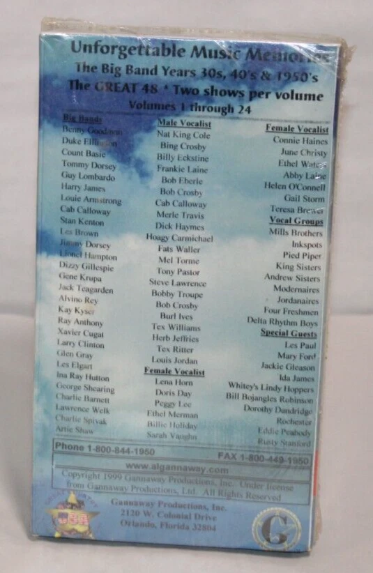 Memories: The Big Band Years - (Volumes 17, 22 & 24 / VHS) – NEW Sealed Memories of the Unforgettable 30’s, 40’s and 50’s: The Big Band Years (The Great 48 Shows) 🎵 Relive the Golden Age of Big Band Music Take a nostalgic journey through the unforgettable 1930s, 40s, and 50s with these timeless performances. This set includes three volumes from the rare 24-volume collection: 1. Volume 17 2. Volume 23 3. Volume 24 Each volume features two half-hour theatrical shorts showcasing the stars and soundtracks of the Big Band era. While the packages don’t list individual performances, the series includes legendary artists such as: · Count Basie · Duke Ellington · Artie Shaw · Gale Storm · And many more! Release Year: 1990 Condition: 📼 Brand New & Factory Sealed – Perfect for collectors and music history enthusiasts. Shop With Us: Explore more vintage treasures in our eBay Store . Save on shipping when purchasing multiple items!